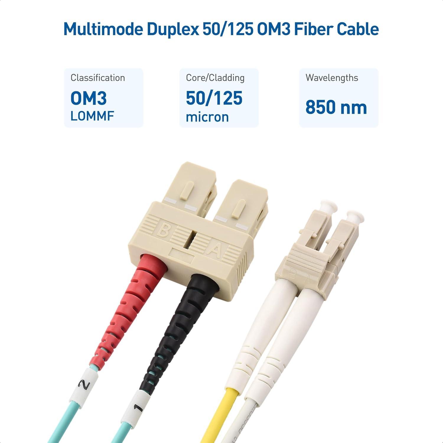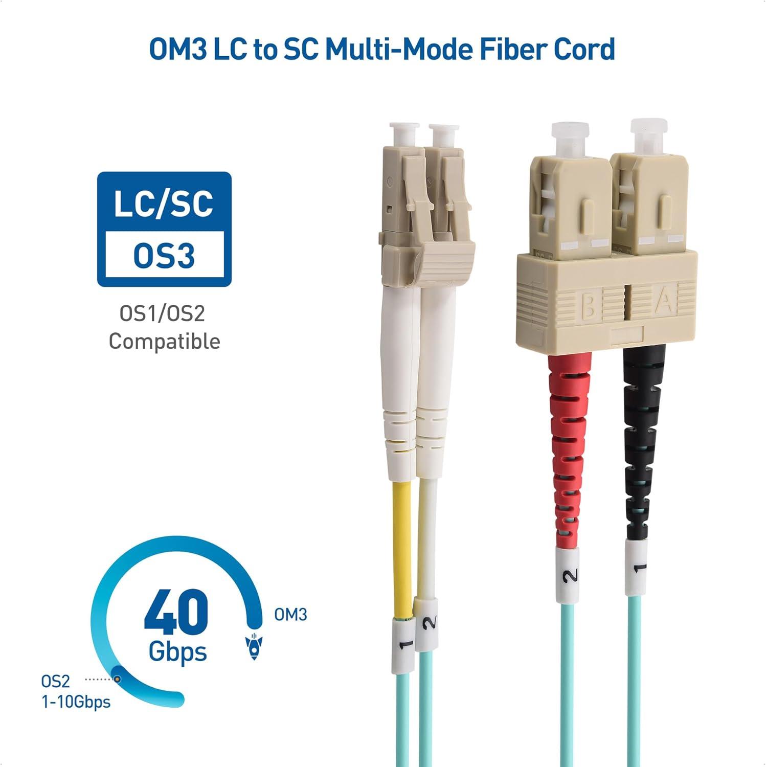 Cable Matters 10Gb OFNP Plenum Rated Multimode Duplex 50/125 OM3 Fiber Cable, LC to SC Fiber Optic Cable - 3.3ft / 1m(5m)