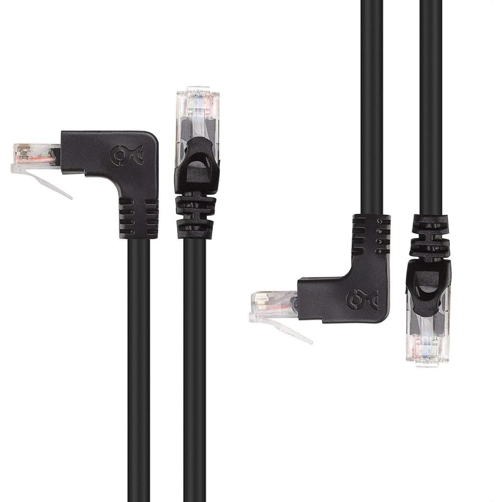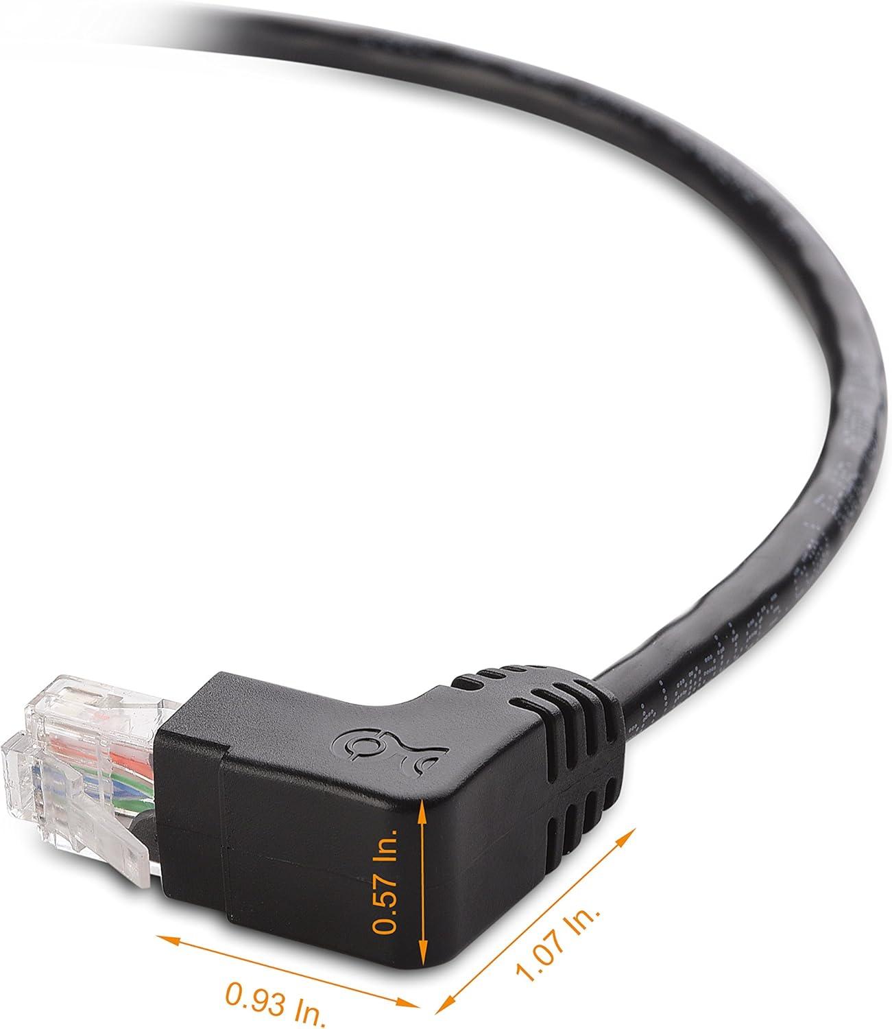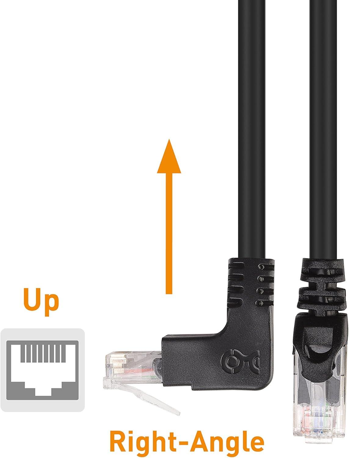 Down + up angled Ethernet patch cables provide a solution for connecting in tight spaces behind furniture or in a network closet; Connect the 90 degree up or down angled end to the RJ45 port of your equipment or network LAN port; Use an angled Ethernet cable instead of excessively bending a straight patch cable