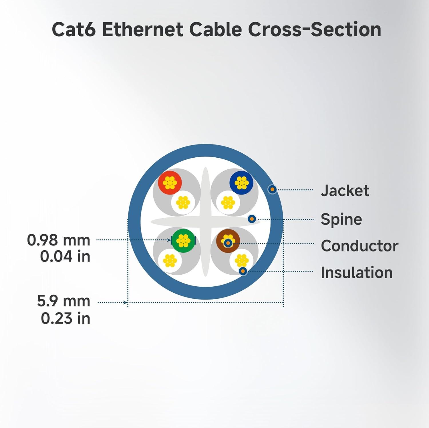 High-Performance Connectivity: This Cat 6 ethernet cable is designed for superior performance, with a 24 AWG copper wire core. It provides universal connectivity as an ethernet cord for LAN network components such as PCs, servers, printers, routers, and more, ensuring reliable and fast network connections