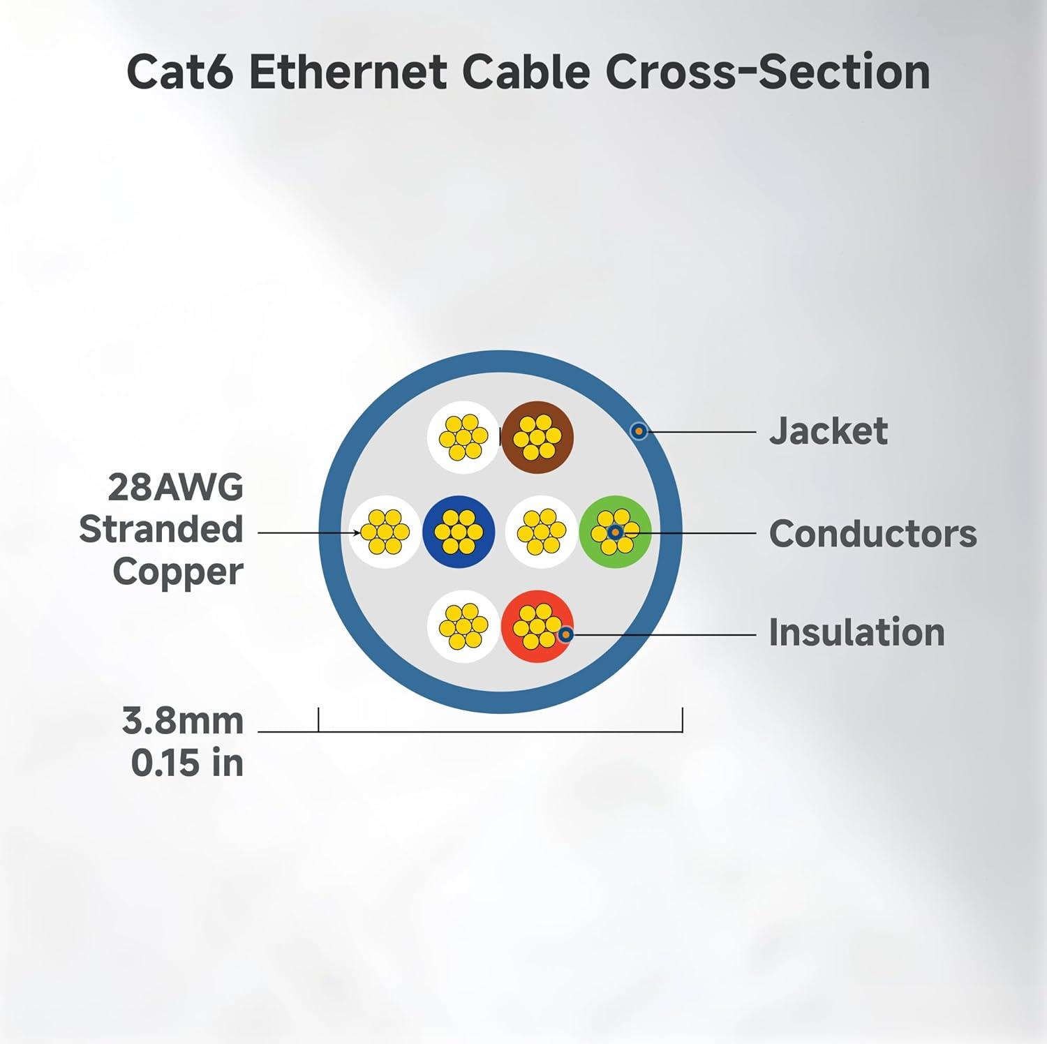 High Performance Cat6 Ethernet Cable: The 28 AWG RJ45 Ethernet Patch Cable offers universal connectivity for various LAN network components such as PCs, computer servers, printers, routers, switch boxes, network media players, NAS, VoIP phones, PoE devices, and more.