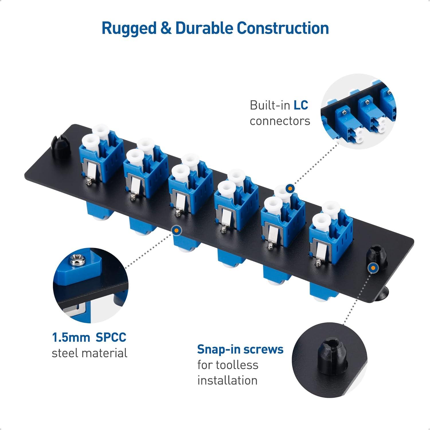Patch panel fiber optic includes 6 built in LC plugs; Connect high speed fiber optic network cables like LC to LC cables to the network patch panel fiber optic