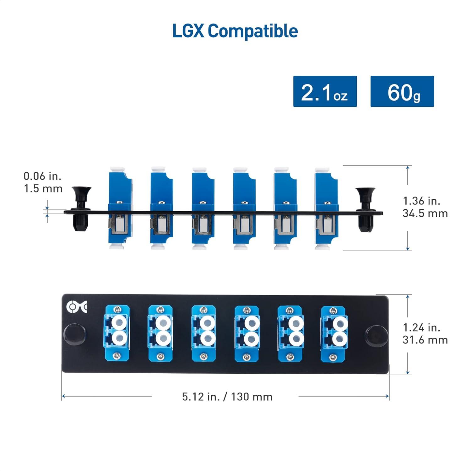 Attach this LGX Compatible patch panel to standard networking infrastructure for fiber optic cable networking; Supports 1U rack systems and other networking equipment including Cable Matters 1U 19'' Blank Patch Panel for LGX Adapter (SKU: 120034)