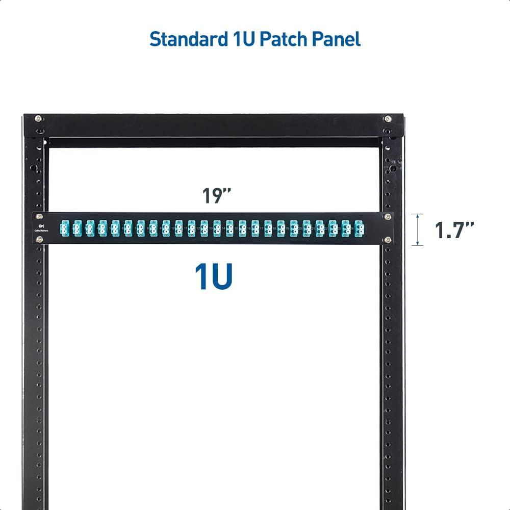 Standard size 1U rack mount fiber patch panel LC is ideal for expanding a network big or small; Rack mount 1U patch panel fiber connects to a standard 19-inch server rack, and measures across one standard rack unit (1.7 inches)