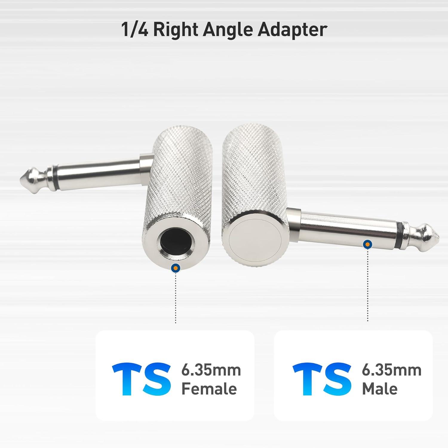 Robust Metal Build: Designed with a sturdy metal housing, each 6.35mm right angle adapter ensures a reliable and secure connection, ideal for use with guitars, bass amps, mixers, and equalizers, enhancing durability for stage or studio use.