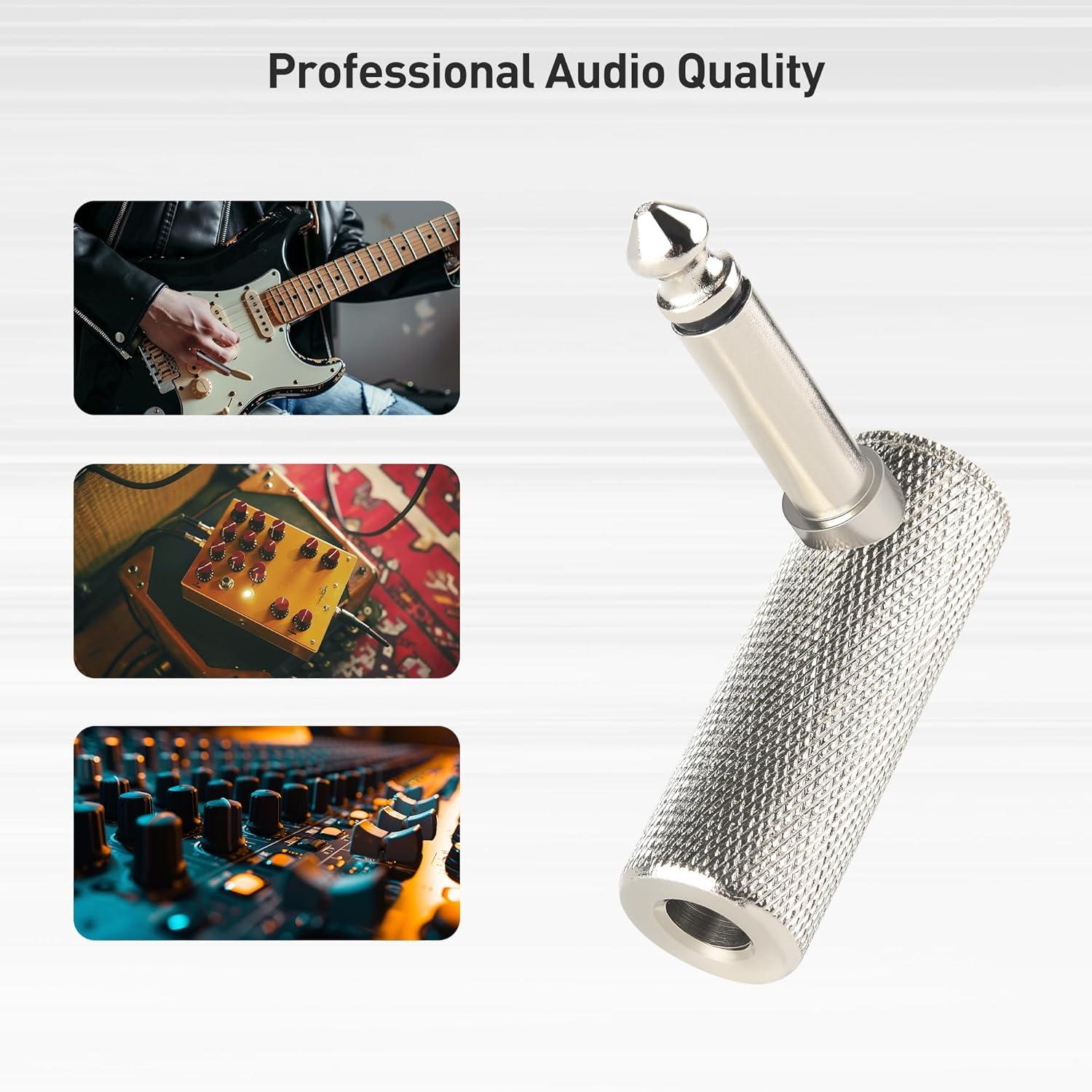 Professional Audio Quality: Ensure stable and high-quality audio connections with this straight to right angle 1/4″ adapter, which prevents signal loss and interference, crucial for maintaining the integrity of your music performance.