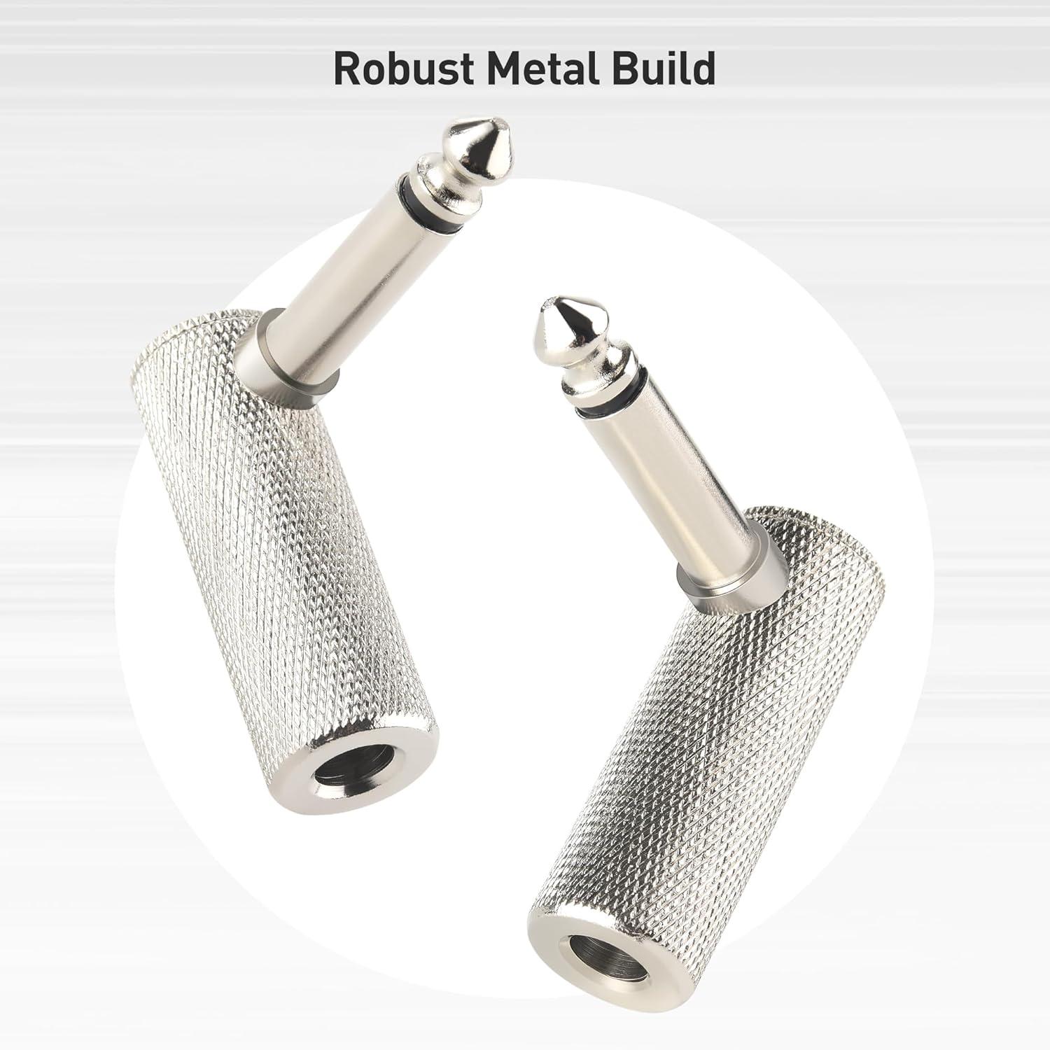 Versatile Pack of Two: This 2-pack of 1/4 right angle adapters offers great value and convenience. With robust metal construction, musicians can keep a spare on hand or outfit multiple instruments and equipment pieces for optimal accessibility and reliability.