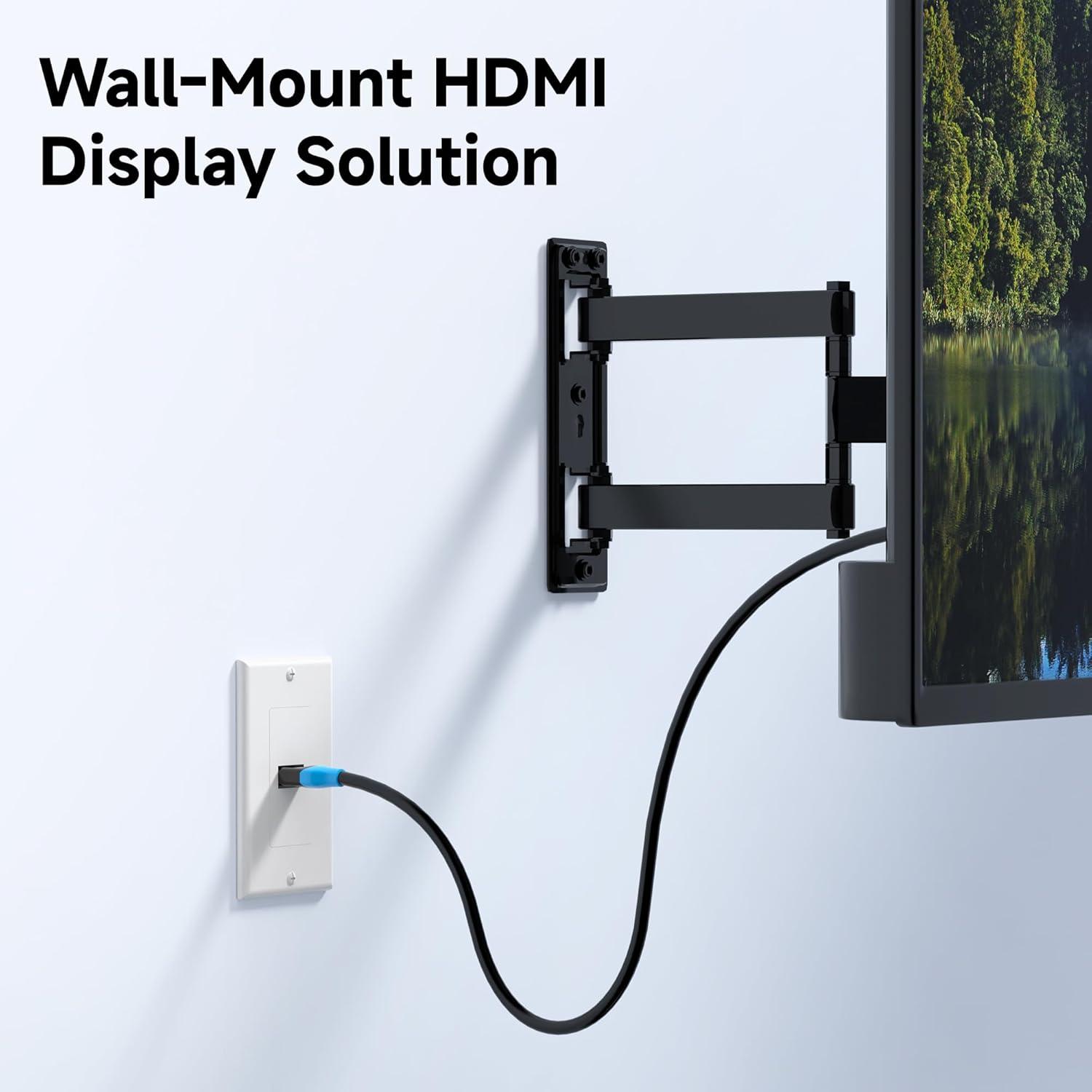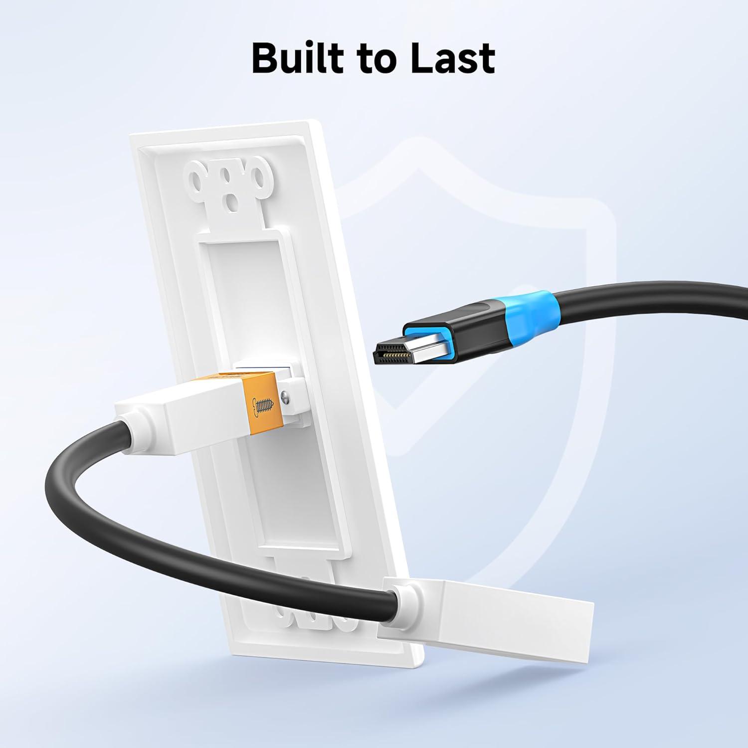 Easy Installation: This two-piece HDMI 2.1 outlet wall plate kit includes a standard-size faceplate and an HDMI insert with a pre-attached cable. The HDMI wall plate 1 port is easy to install using the included mounting screws, making it ideal for DIY upgrades or professional installs.