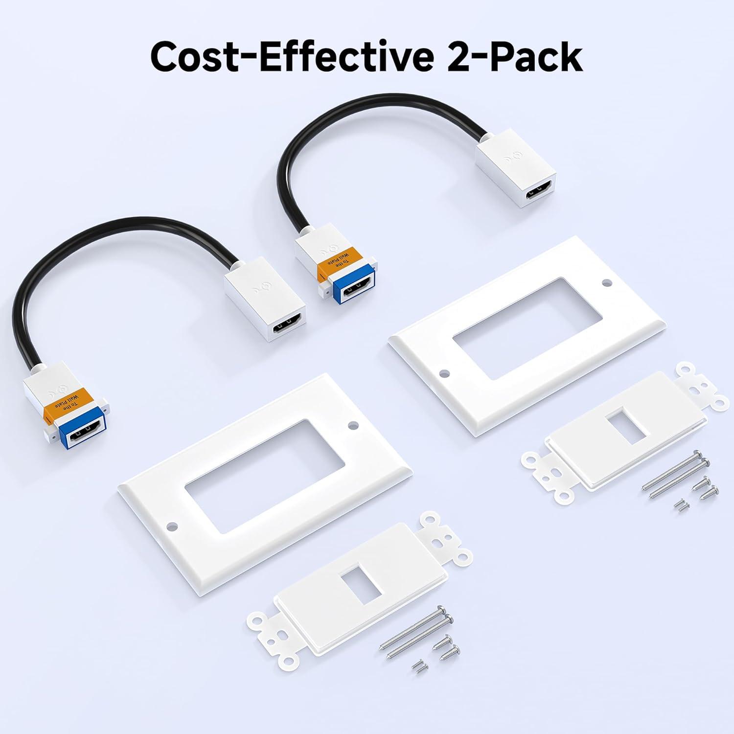 Cost-Effective 2-Pack: This 2-pack HDMI home theater wall plates solution allows clean in-wall HDMI cable routing to eliminate clutter. Use it to connect HDMI cables behind your TV, monitor, or projector in home theaters, classrooms, or business environments.