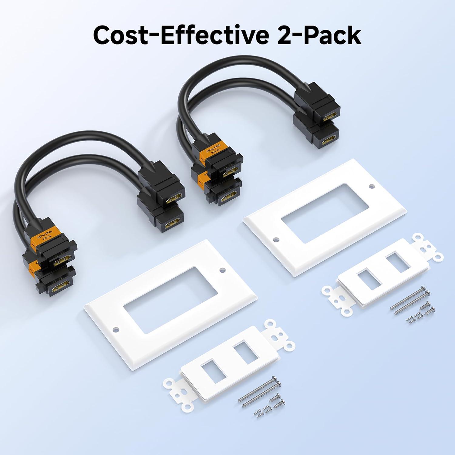 Cost-Effective 2-Pack: This value 2-pack provides two HDMI plate options to cleanly route HDMI cables behind the wall. Great for use near TVs, monitors, or projectors in home theaters, offices, classrooms, or conference rooms—eliminating messy, exposed cables for a tidy, professional look.