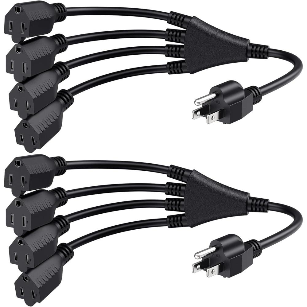 Cable Matters 2-Pack 2 Outlet Power Splitter Cord – 1.2ft, NEMA 5-15P to NEMA 5-15R Y Power Cord Splitter, 16 AWG Outlet Saver, 1.2 Feet(4-Outlet)
