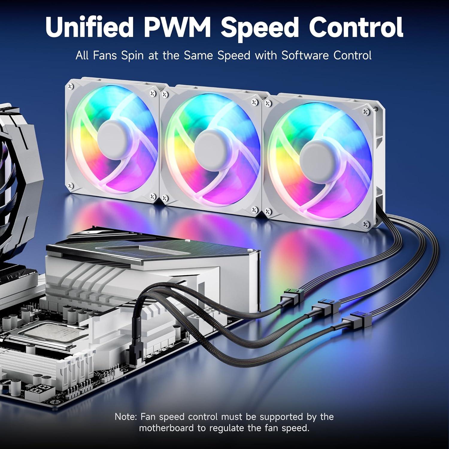 Unified PWM Control: PC fan splitter connects to the 4-Pin header on the motherboard and splits the signal to 3 PWM fans; PWM fans can spin at the same speed using software from a motherboard equipped with PWM control.
