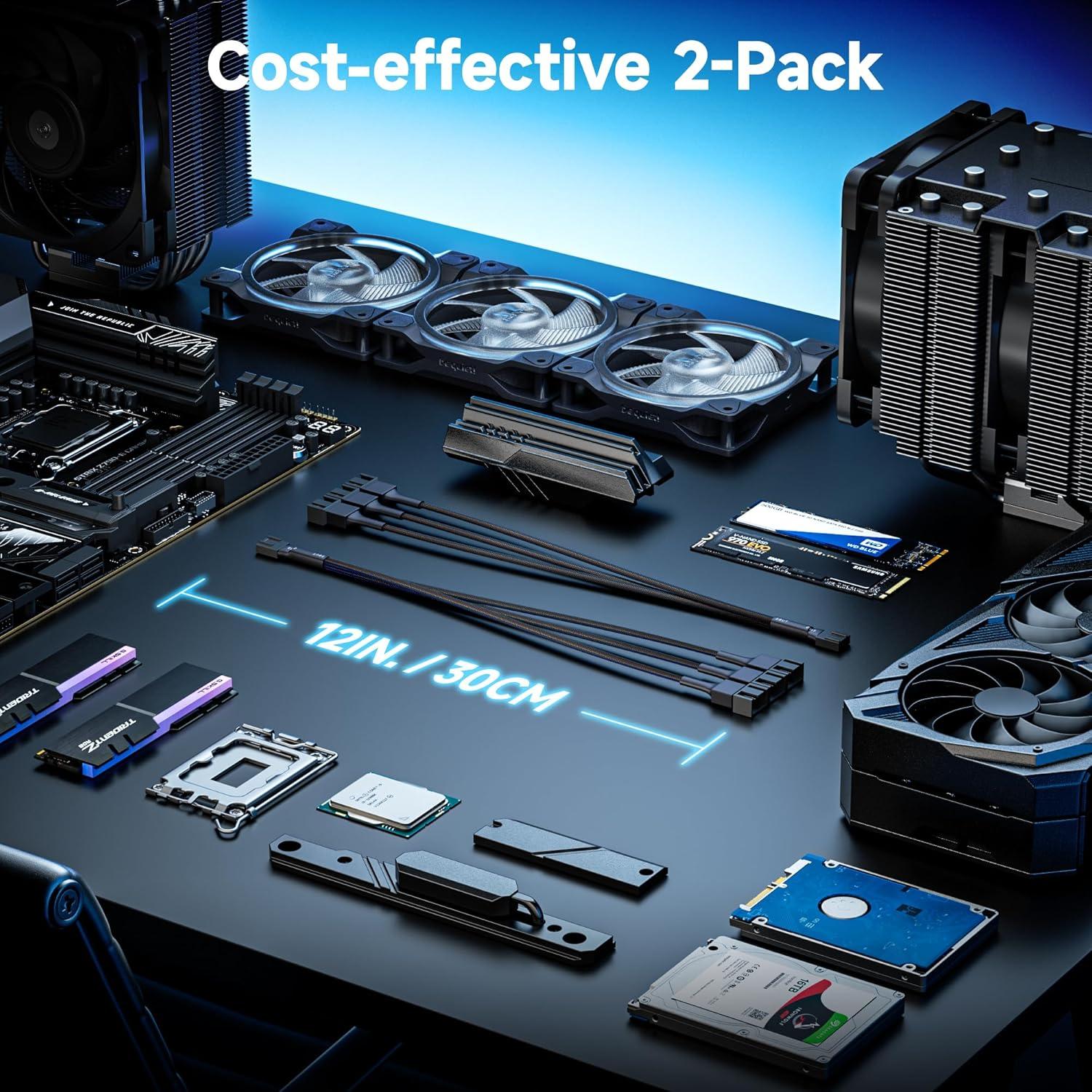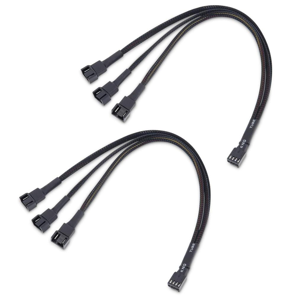 Spare Cable Convenience Pack: Cost-effective 2-pack of computer fan splitter 4 pin cables provides a spare cable for adding a fan to increase cooling in your computer; Sleeved and wrapped black 12-inch case fan splitter cable provides a tidy look in an open computer case.