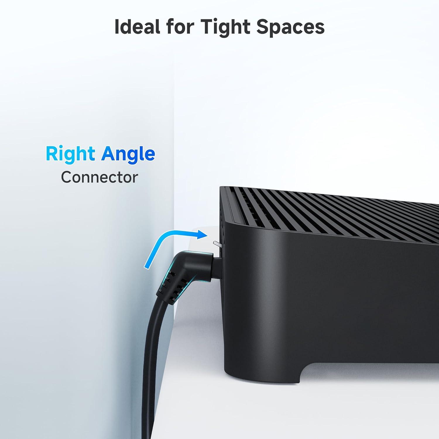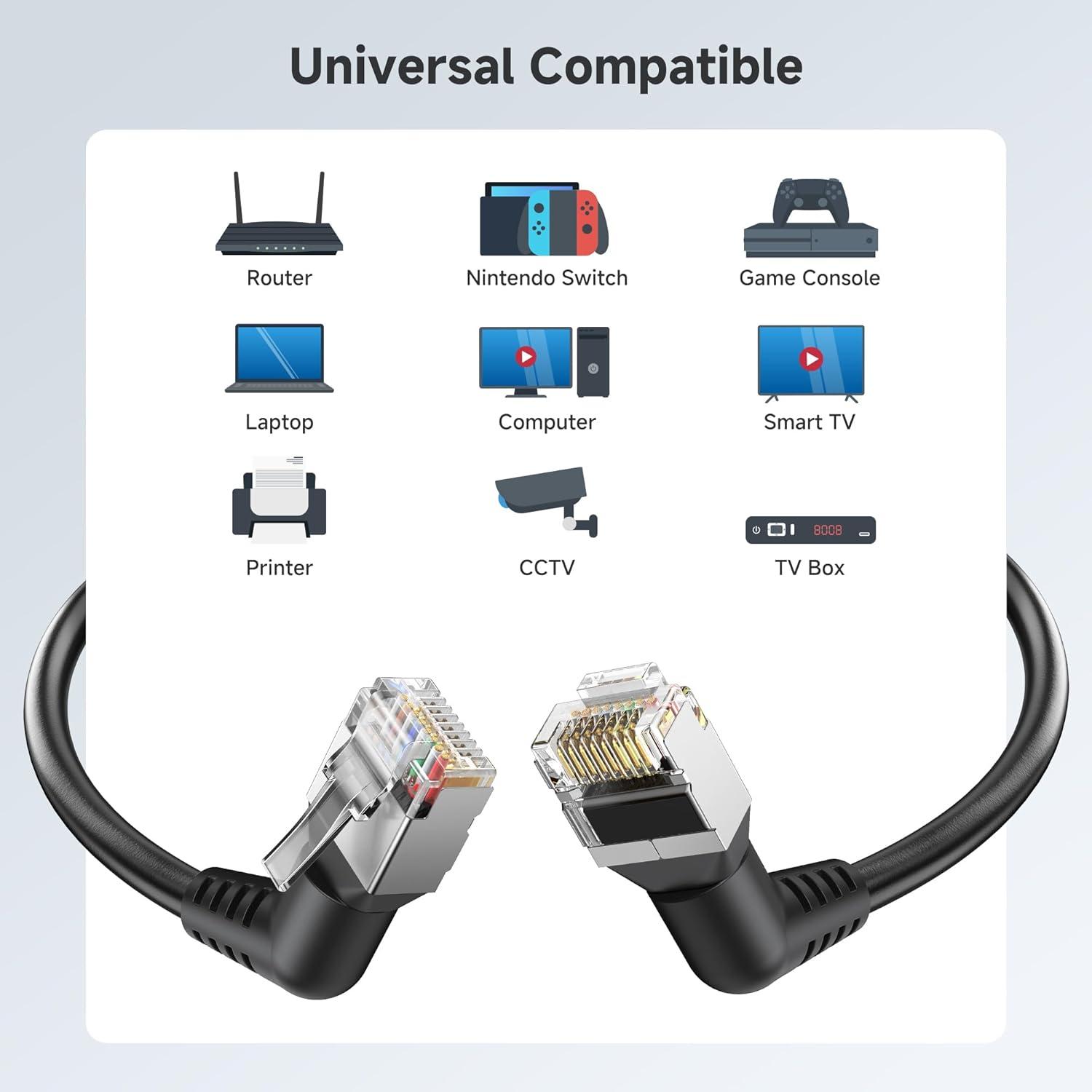 Future-Proofed for Next-Gen Networking: Ideal for professional and home use, this right-angle Cat 8 cable supports future-proofed networking needs, ensuring compatibility with the latest Ethernet standards and devices for optimal network performance.