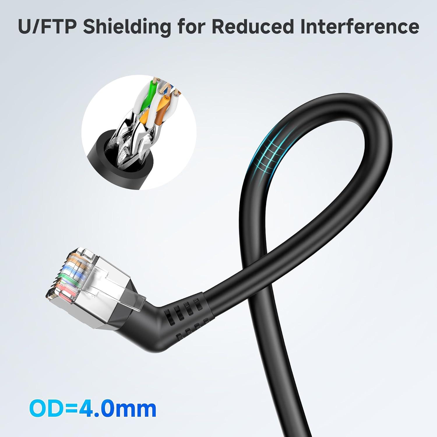 U/FTP Shielding for Reduced Interference: The U/FTP (Unshielded Foiled Twisted Pair) design features shielding around each individual wire, providing a robust barrier against crosstalk, EMI, and RFI. Enjoy stable and reliable connections even in environments with heavy electrical interference.