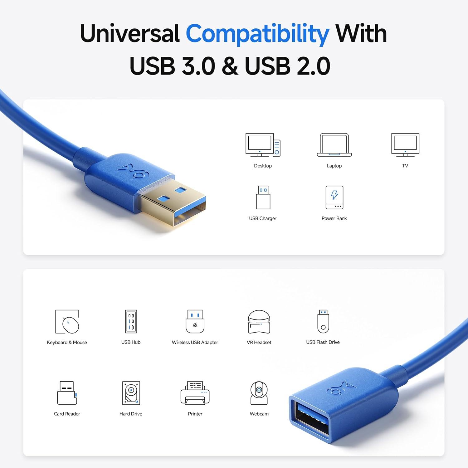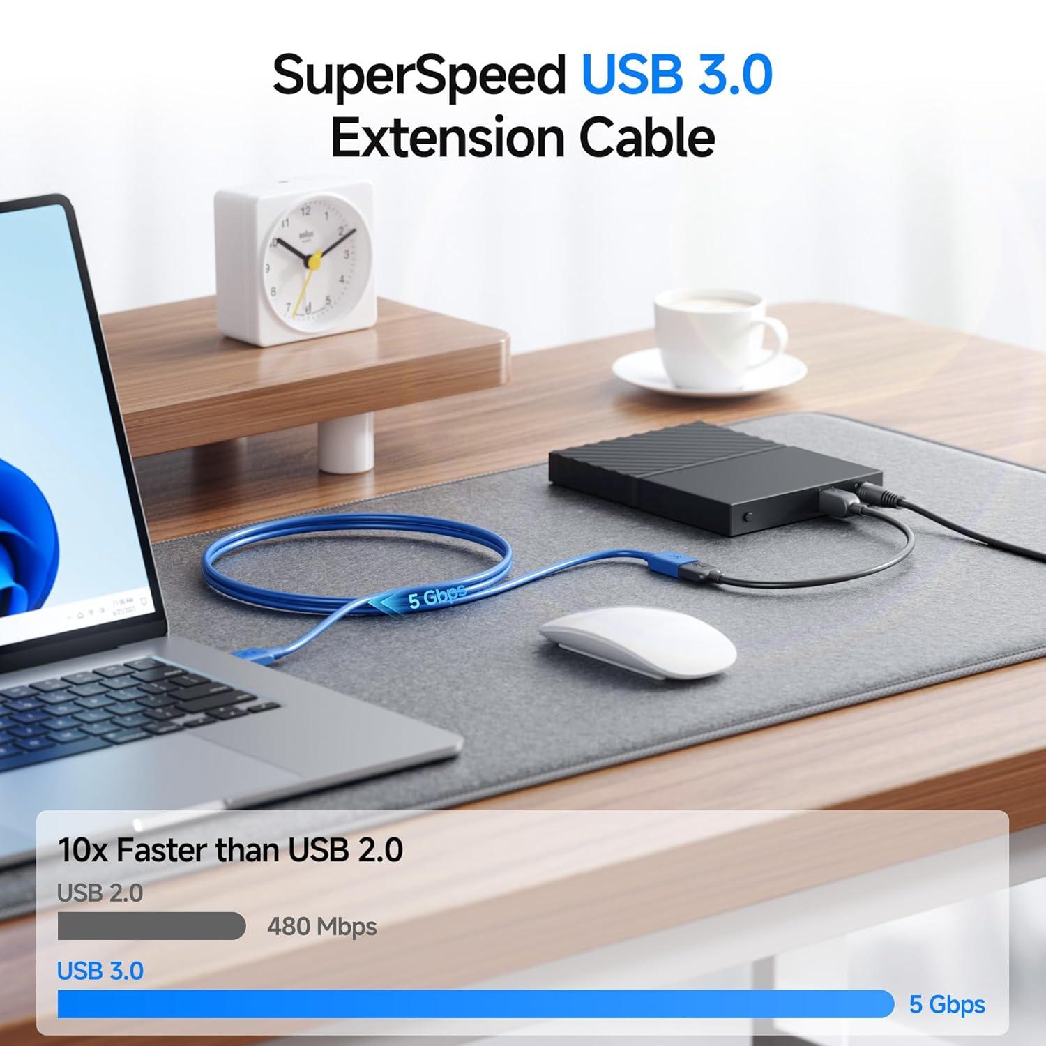 High-Performance USB 3 Extension Cable: Extend the connection between your computer or Windows tablet and USB 3.0 and USB 2.0 peripherals, including VR headsets, hard drives, USB hubs, mice, keyboards, flash drives, printers, and more.