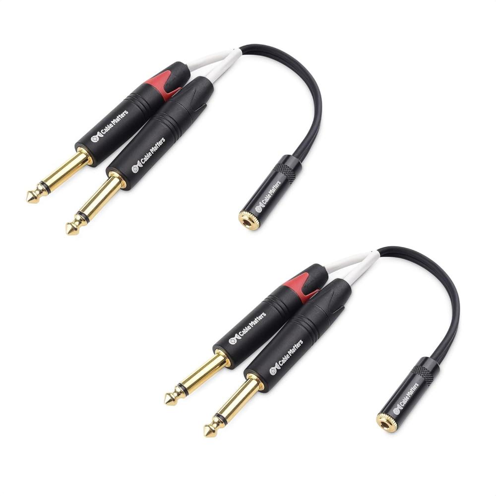 Cable Matters 2-Pack Dual 1/4 to 3.5mm Female Stereo Audio Splitter Cable (3.5mm to Dual 1/4 Adapter) in Black – 6 Inches / 0.15 Meters