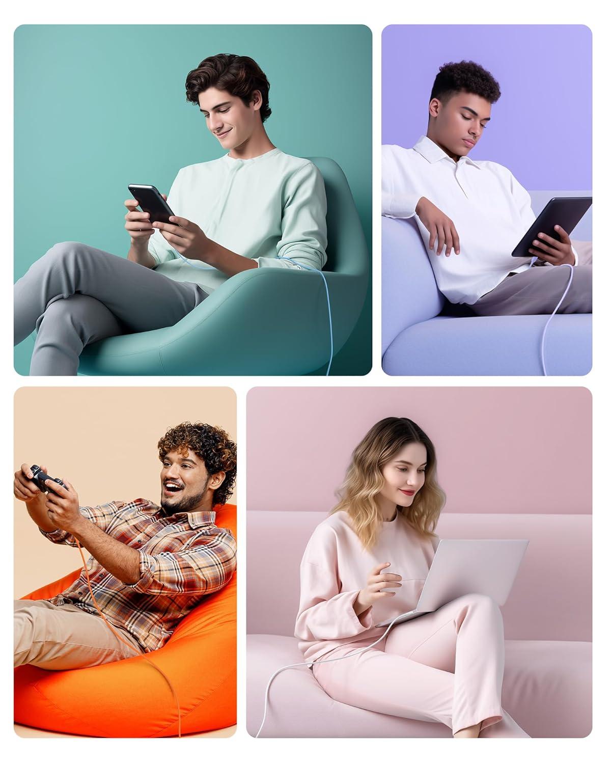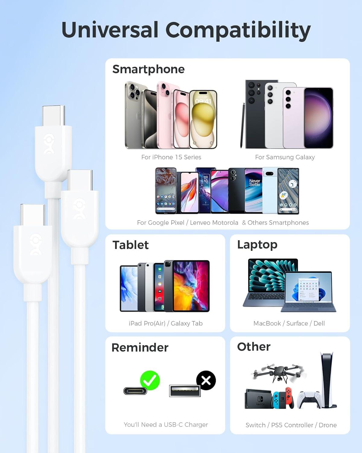 High-Power USB-C Charging: Power up your tech with our 240W USB-C charge cable, designed for devices requiring substantial energy like gaming laptops, MacBook Pro/Air, Dell XPS, HP Spectre x360, Lenovo Yoga, and Surface Pro. It's also compatible with smartphones and tablets including iPhone 15 series, iPad Pro/Air/Mini, Galaxy S23/S22 series, and more, offering ultra-fast charging capabilities.