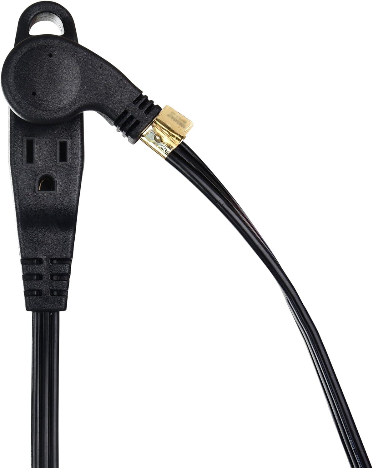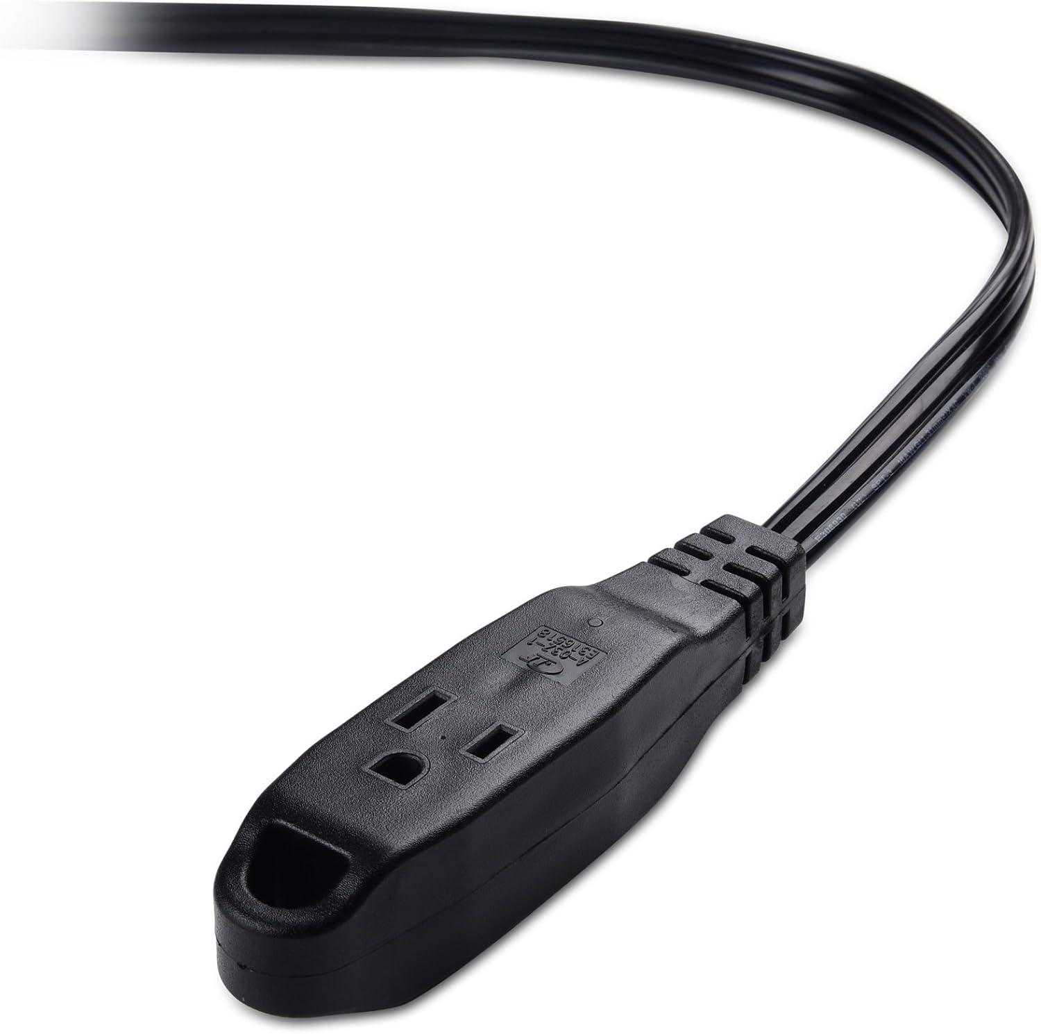 Flat outlet plug on this flexible and slim grounded power extension cord extends less than 1 inch from the wall outlet to fit into tight spaces; Fully molded strain relief connectors provide long life and durability; Extend a short lamp cord to an outlet behind furniture or connect temporary holiday lights with this outlet extender