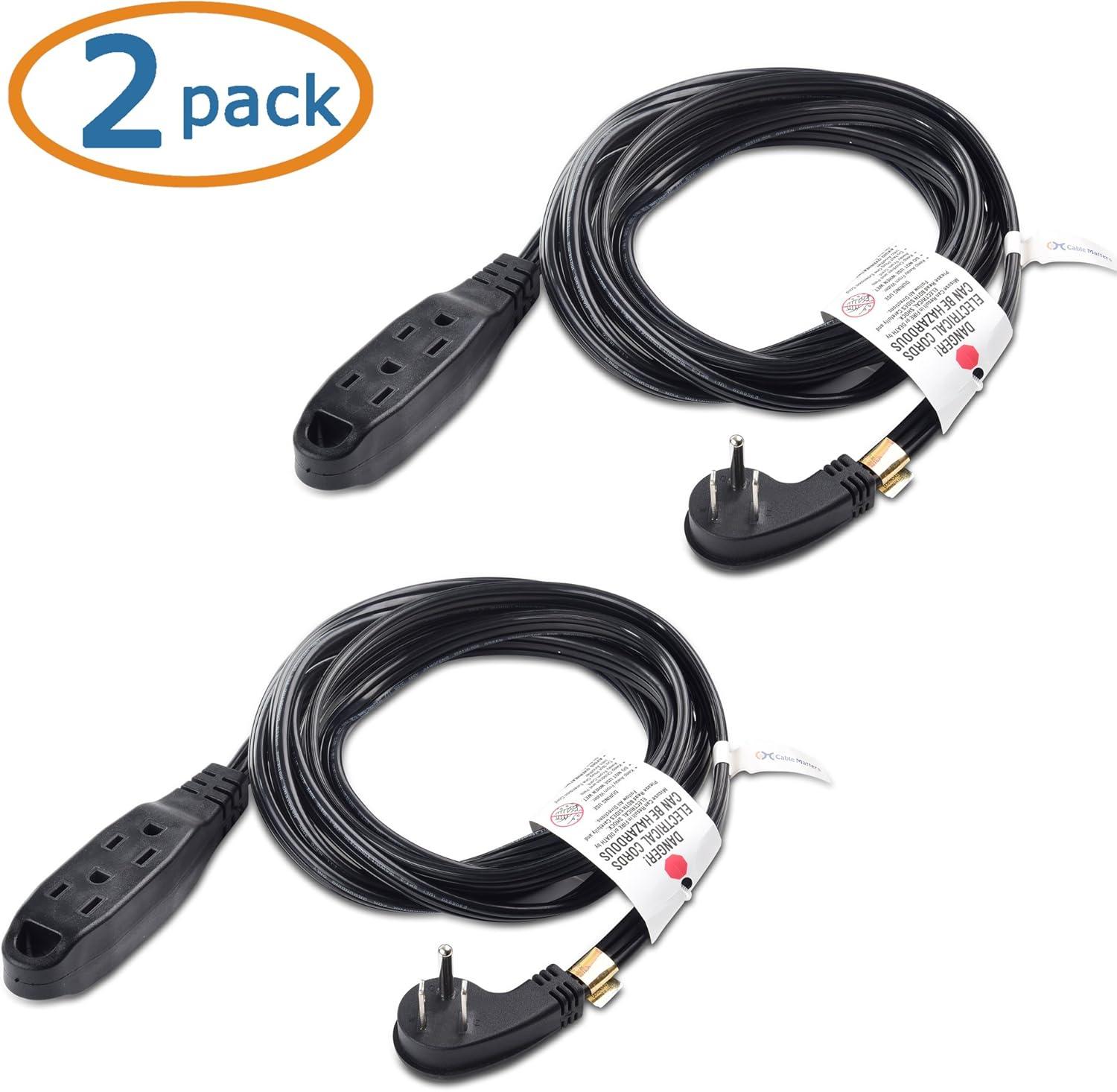 Cable Matters 2-Pack Flat Plug 3 Outlet Extension Cord - 6ft, [NEMA 5-15P to 3X NEMA 5-15R, 13A/125V/1625W] Grounded 3 Outlet Power Cord with Space Saver and Hanging Loop(10 Feet)