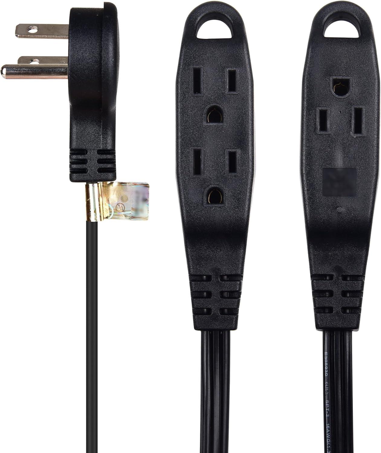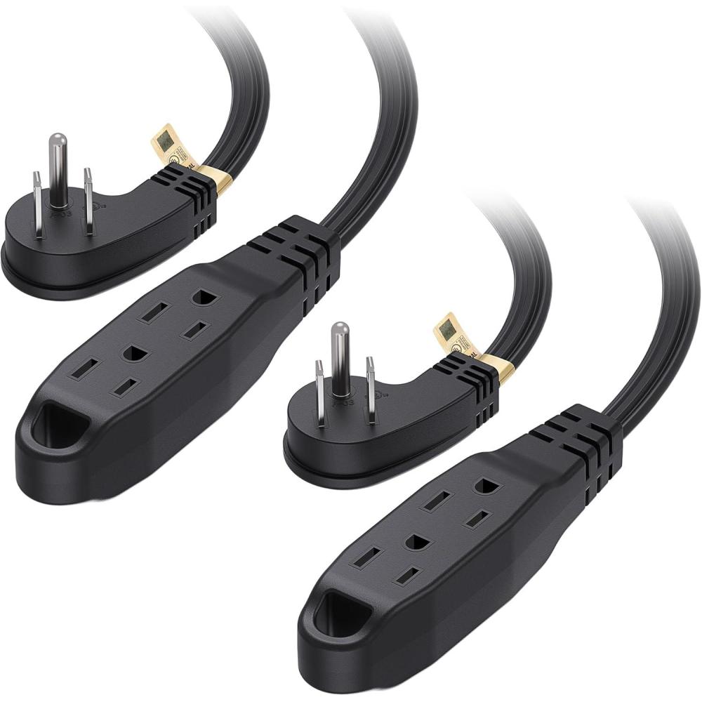 Safe & reliable with a NEMA 1-15P polarized, male power plug and 3 NEMA 1-15R polarized, female receptacles; Rated for 1625 Watts to easily extend a TV power cord from an HDTV with a power consumption of 200 watts or less; Cost-effective 2-pack of outlet cords includes a lifetime warranty and product support