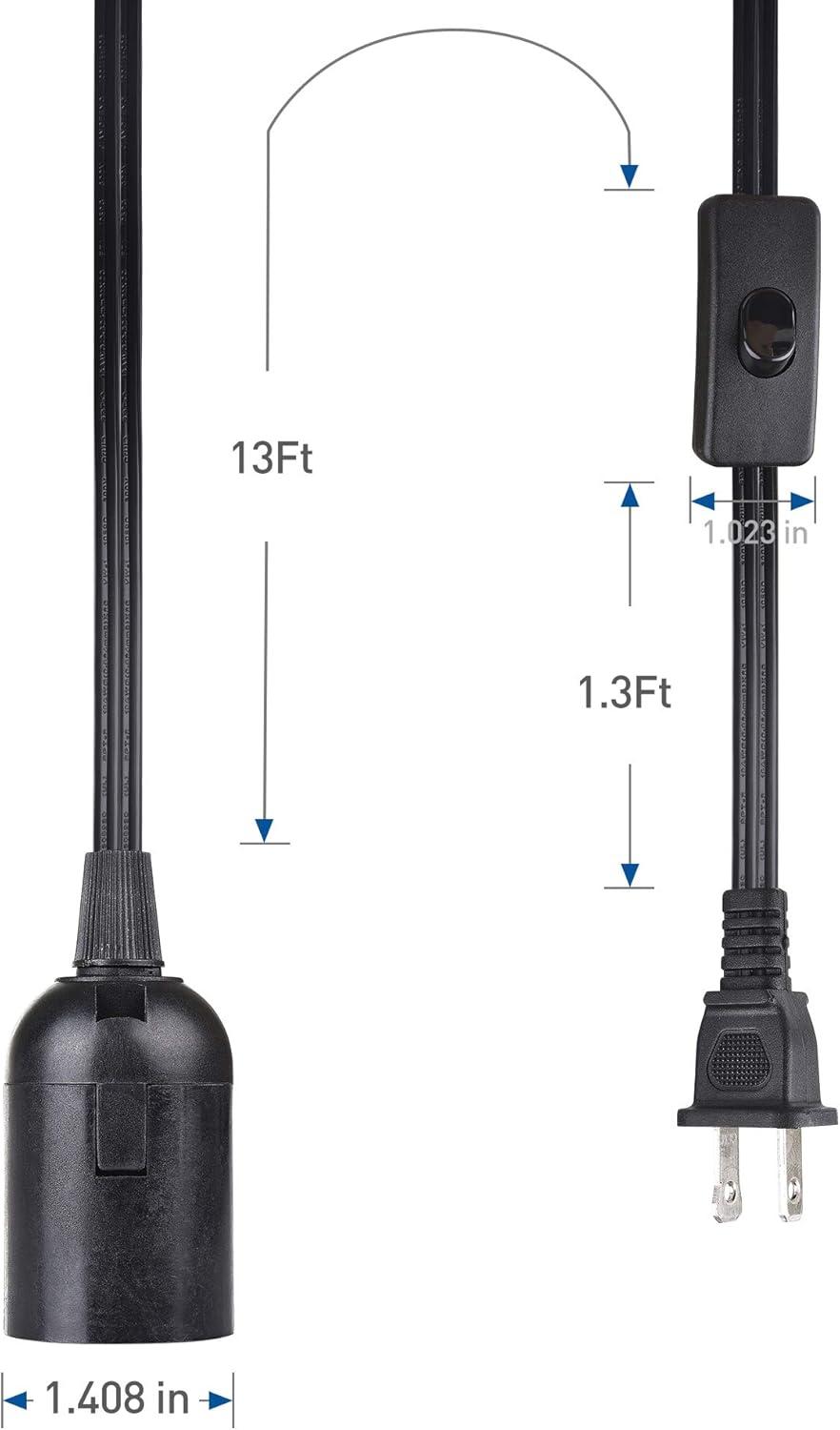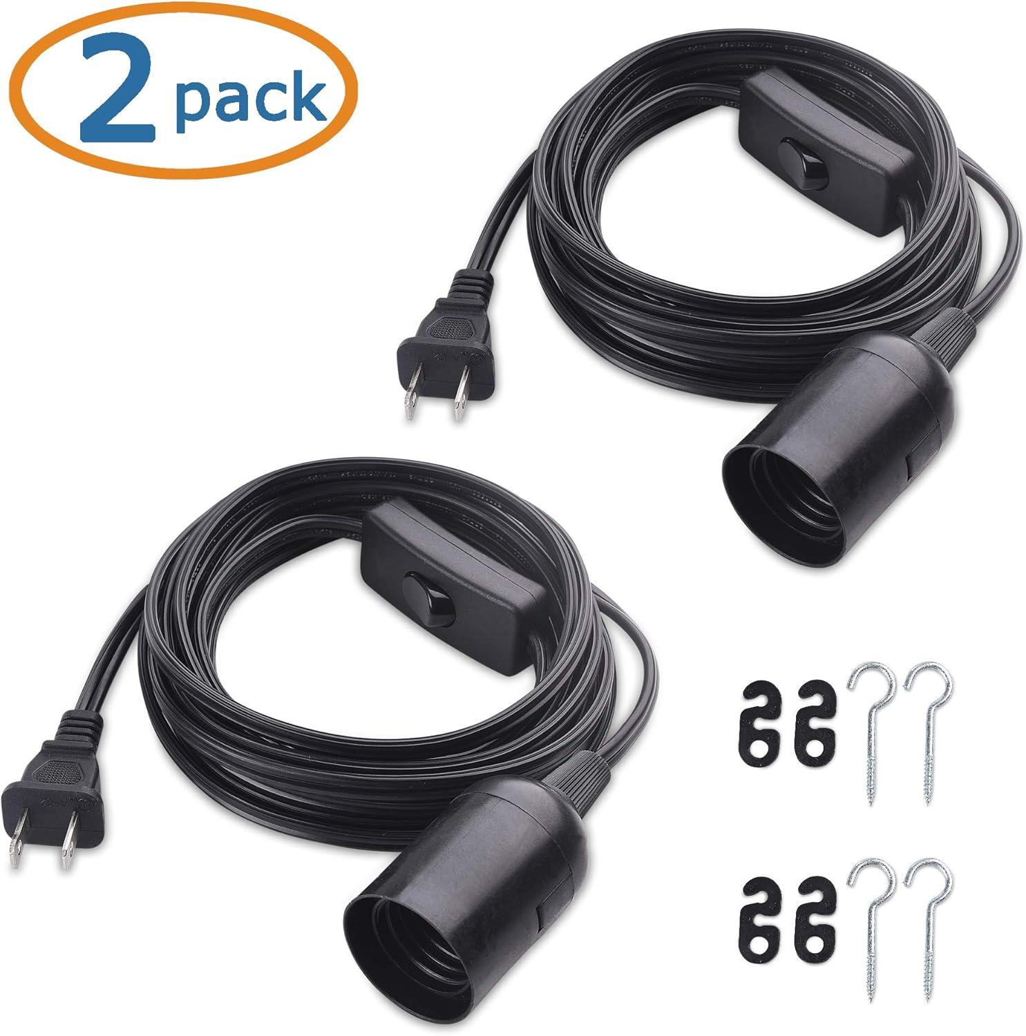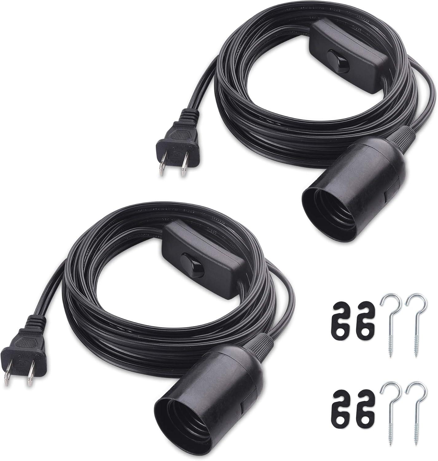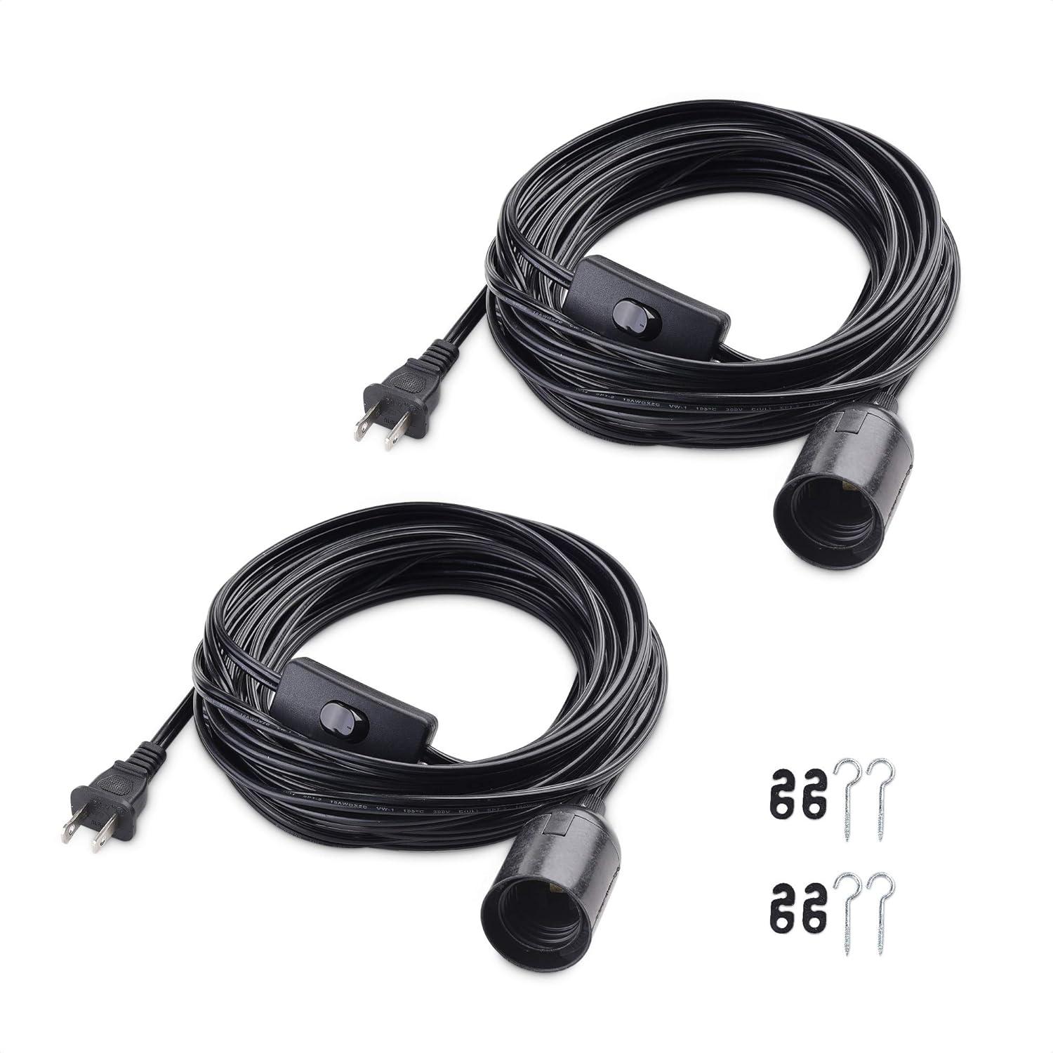 Hanging lamp cord with switch provides unlimited options for lighting in the living room, bedroom, dining room, home office, closet space or garage; Hang a light near an electrical outlet with the included hooks and cord wrappers