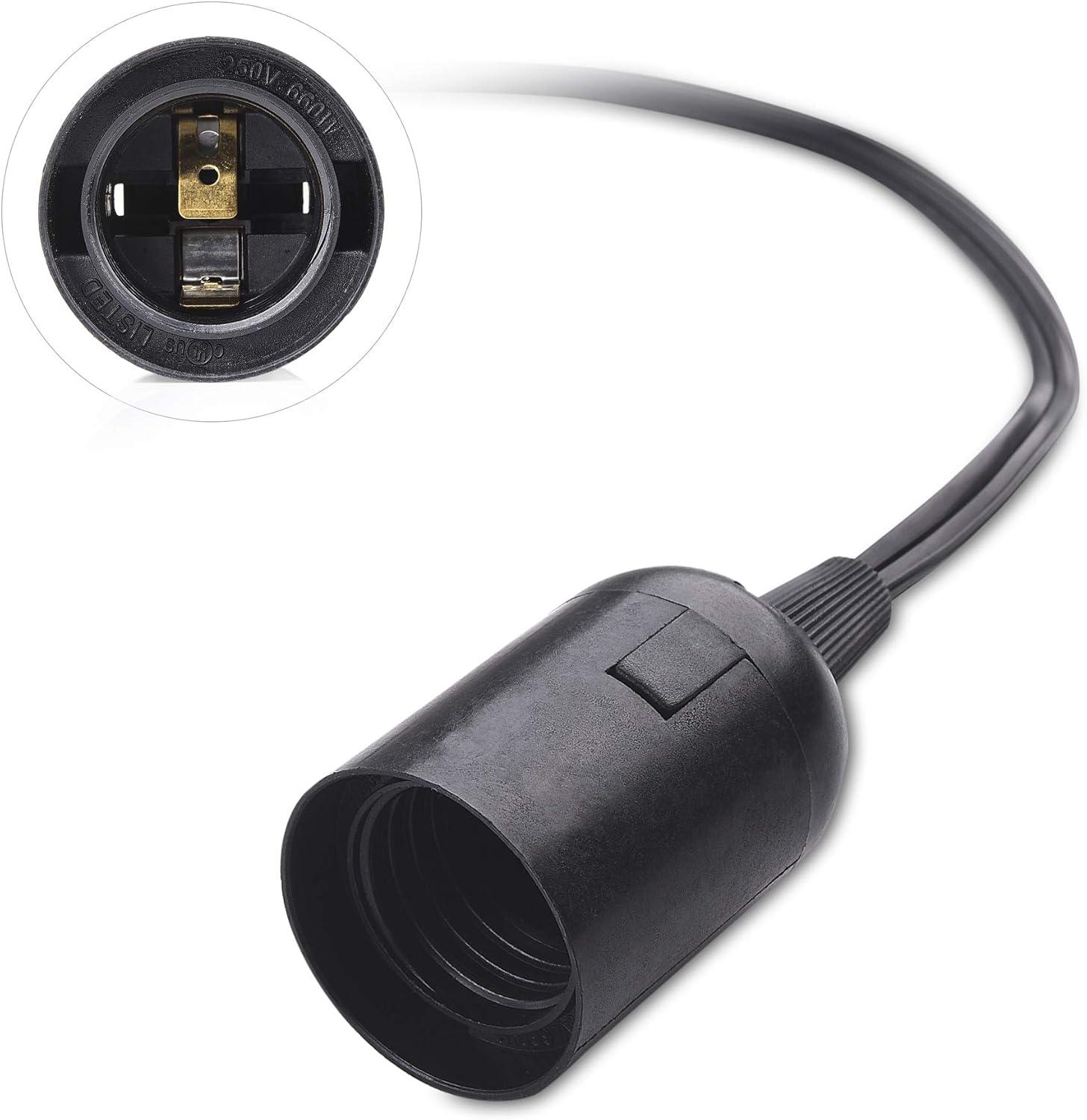 Safety rated e26 light bulb socket adapter is constructed of fire-resistant materials and rated to support 110 to 125 volts and 375 watts; Light cord with switch is compatible with E26 US standard screw-base fluorescent, incandescent, or LED lights