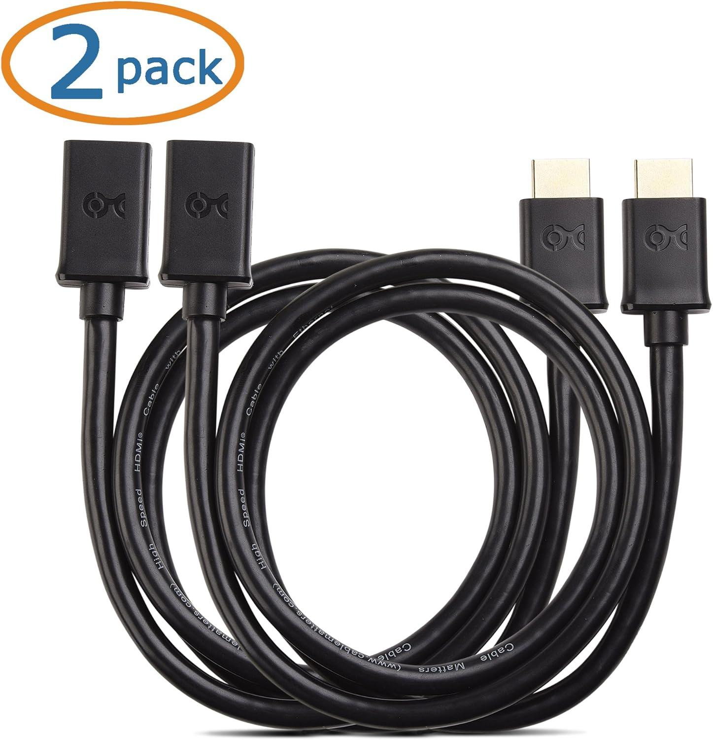 2-pack High Speed HDMI extension cables extend the connection between your Ultra 4K TV (UHD TV), HDTV, monitor, or projector and HDMI source devices such as Blu-ray player, computer, AV receiver, Apple TV, Roku streaming media player, cable box, PlayStation, and Xbox
