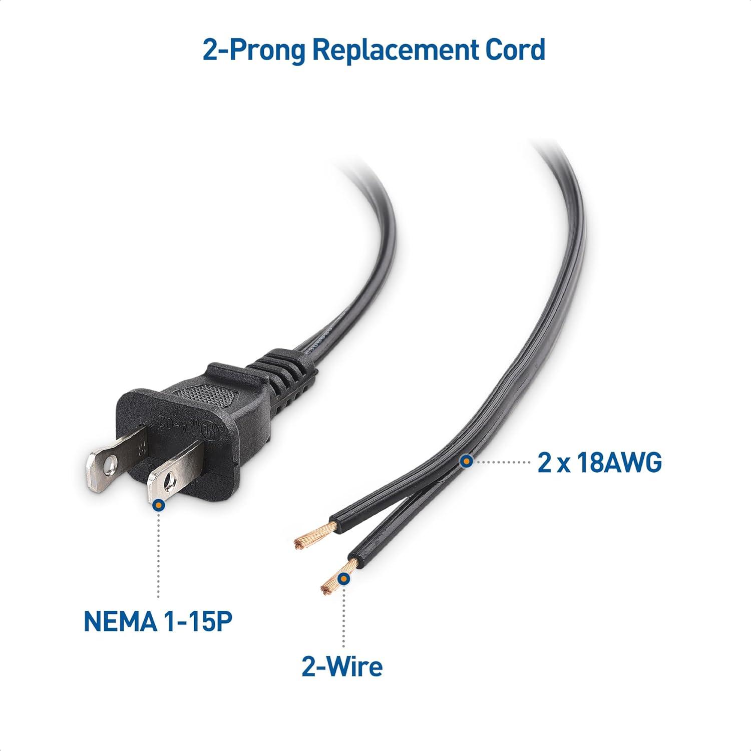 2 prong plug replacement is a UL listed power cord, and features a safe, durable design; Plug is polarized for safe insertion and removal from wall outlets