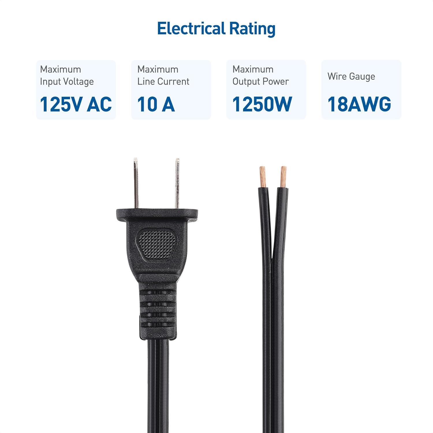 Use the Cable Matters 2-Pack of replacement plug 2 prong cables to repair and replace damaged appliance power cords; Avoid costly appliance replacement by replacing appliance electric plugs with a simple to use electrical plug