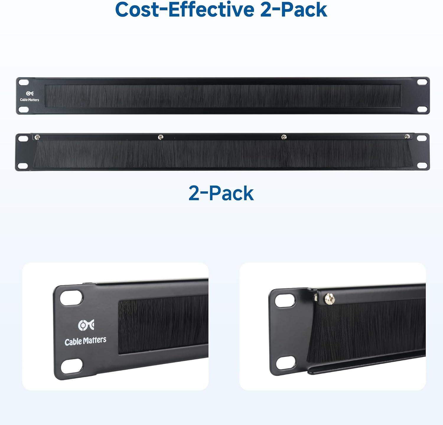 Cable Matters 2-Pack Rackmount or Wall Mount 1U 19” Brush Panel (19-inch Rack Mount Brush Panel 1U) in Black