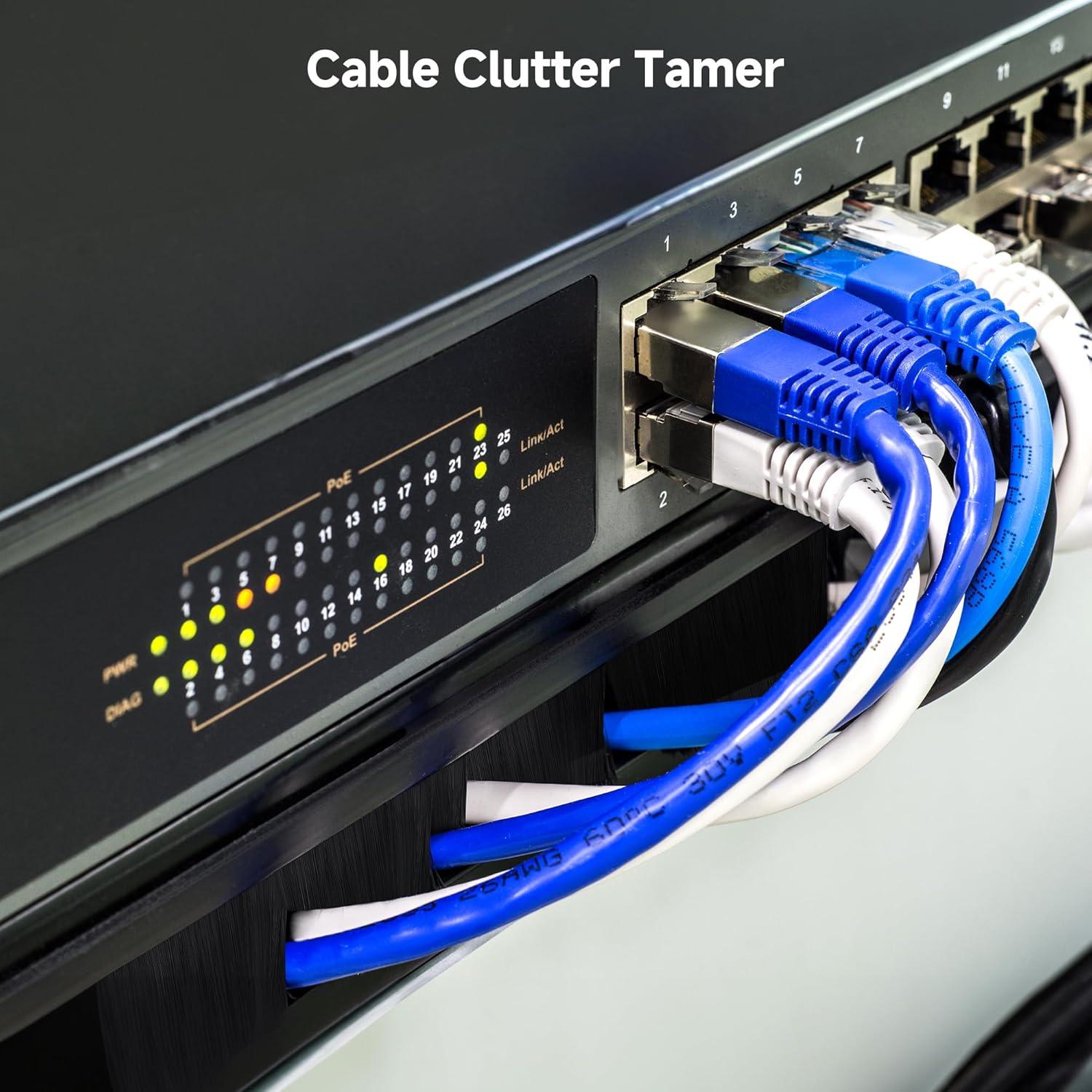 Cable Clutter Tamer: Neatly feed cables through the soft brush strip on the rack mount brush strip; This cable management brush panel is ideal for organizing cables connected to the rack mount servers