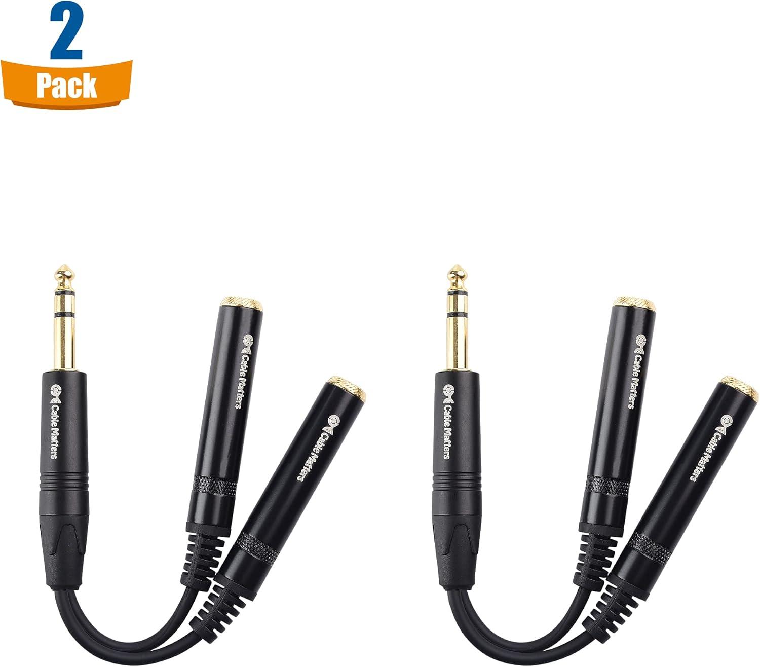 Cable Matters 2-Pack TRS Male to 2X TRS Female 1/4 Splitter Cable (1/4 Inch Headphone Splitter Cable) in Black - 0.2m / 6 Inches