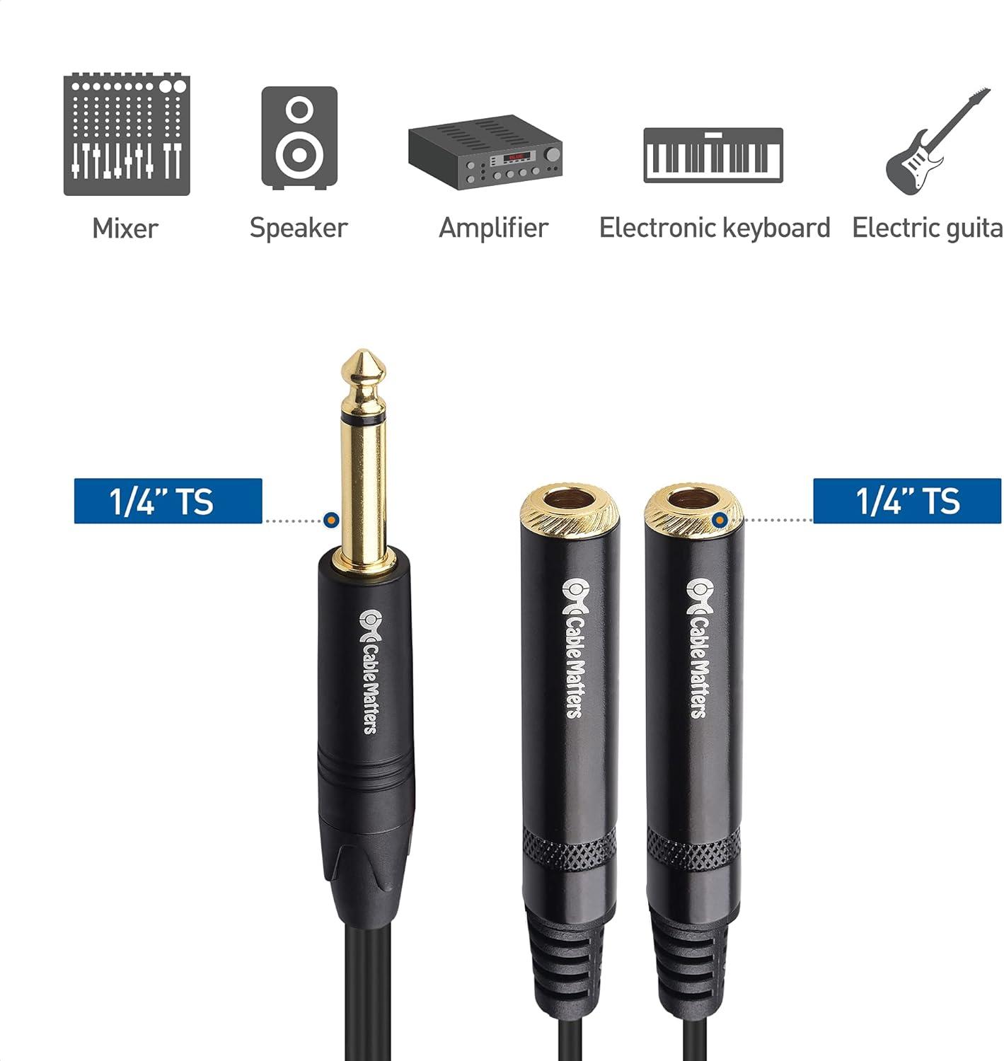 Connect more instruments with the Cable Matters 1/4 Inch Splitter Cable; TS to 2x TS 1/4 inch adapter cable splits one mono signal into two