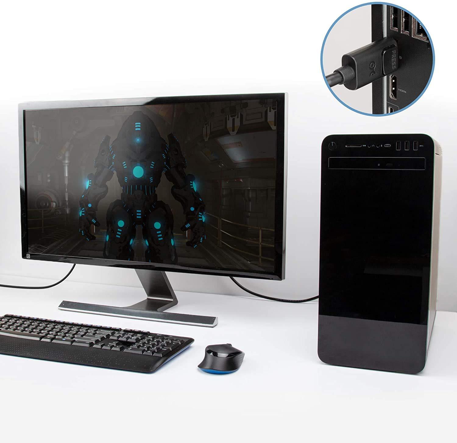 Displayport to HDMI cable transmits high-definition audio and video from your computer to an HDTV for video streaming or gaming; Display Port to HDMI adapter cable connects DP to HDMI and configure your monitor for an Extended Desktop or Mirrored Displays
