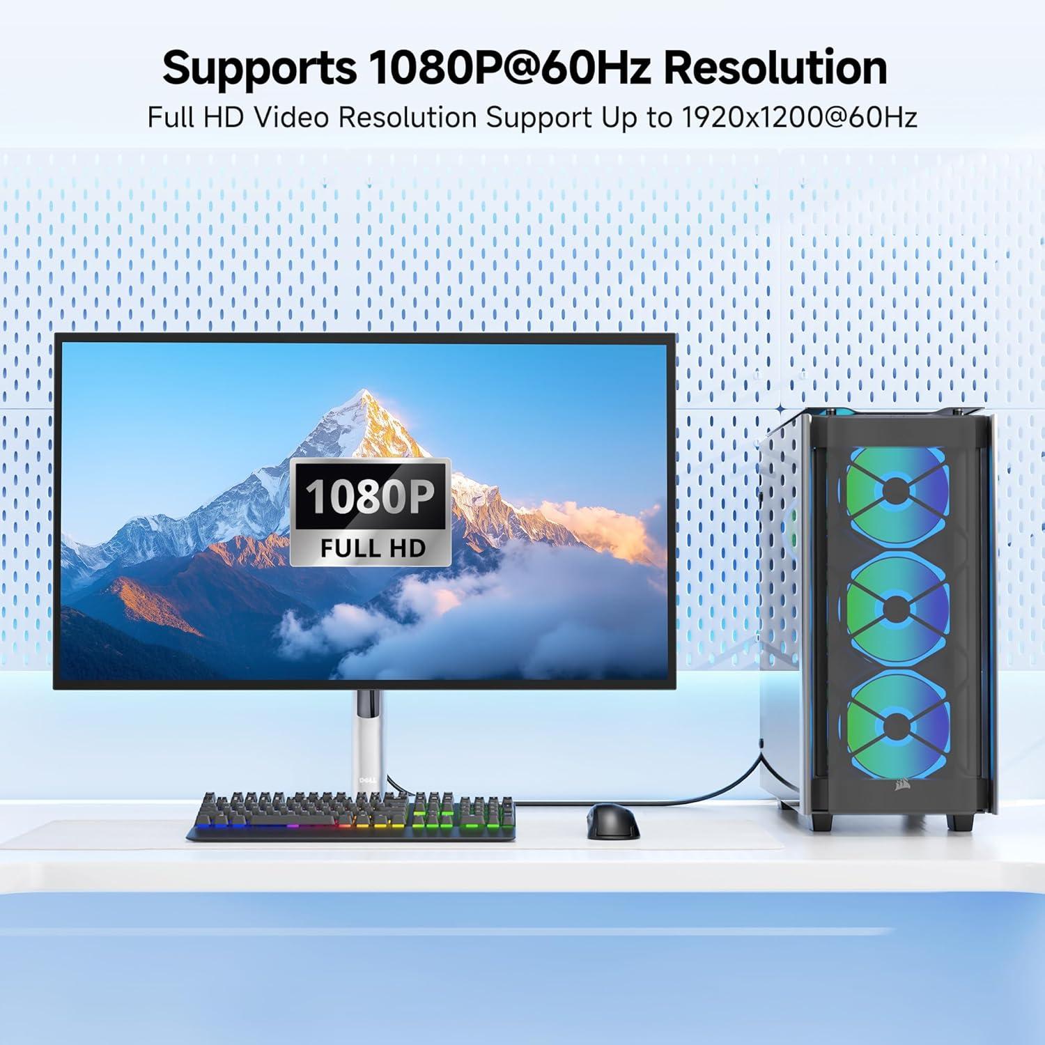 Displayport to HDMI cable transmits high-definition audio and video from your computer to an HDTV for video streaming or gaming; Display Port to HDMI adapter cable connects DP to HDMI and configure your monitor for an Extended Desktop or Mirrored Displays