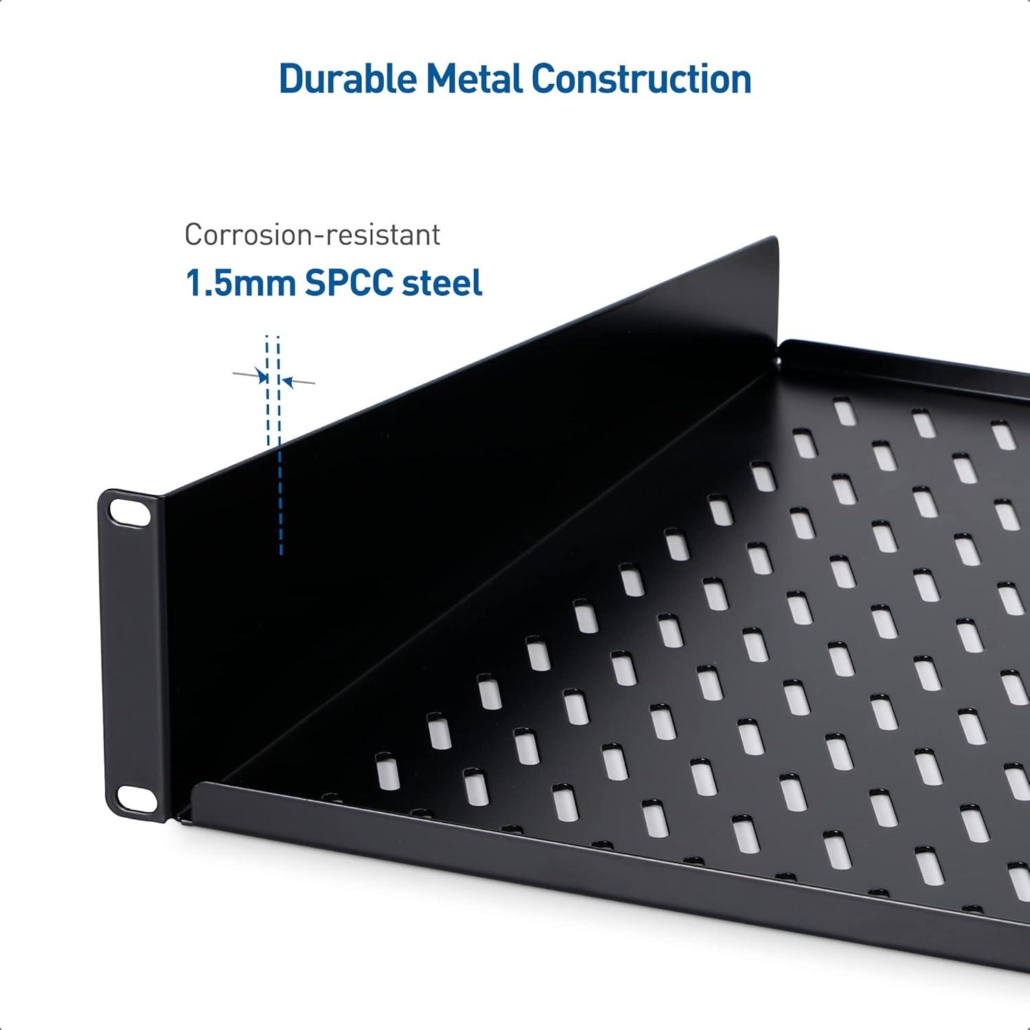 Superior construction of the 2u shelf 1.5mm steel for long-lasting support and support for the most demanding networking hardware