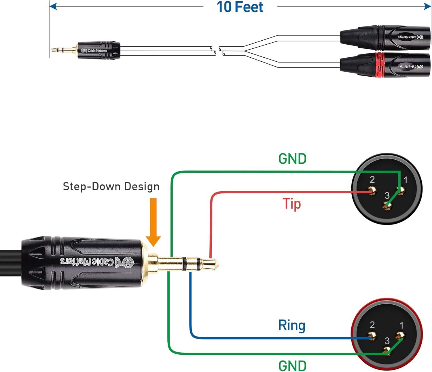Robust construction includes a flexible PVC jacket with gold-plated connectors in an easy-grip housing; Step-down design of 3.5mm plug on XLR cable allows for connection to the recessed portsof a smartphone or tablet; Easily split the dual XLR to 1/8 cable with individual cable jackets to fit close or widely separated XLR ports