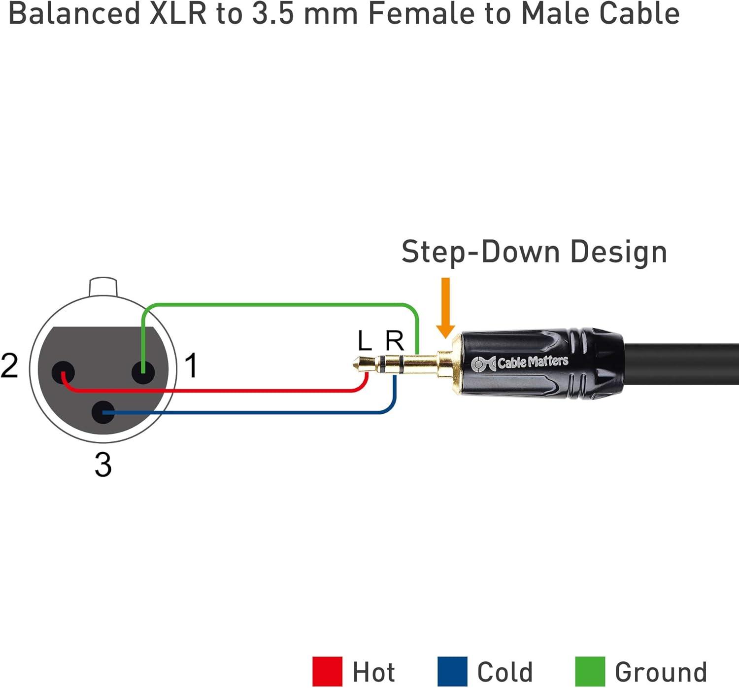 Cable Matters 3.5mm to XLR Cable - 6ft, Male to Female 1/8 to XLR Cable, XLRFemale to 3.5mm Cord for DSLR, DV Camcorder, Digital Voice Recorder or More, Black(6 ft)