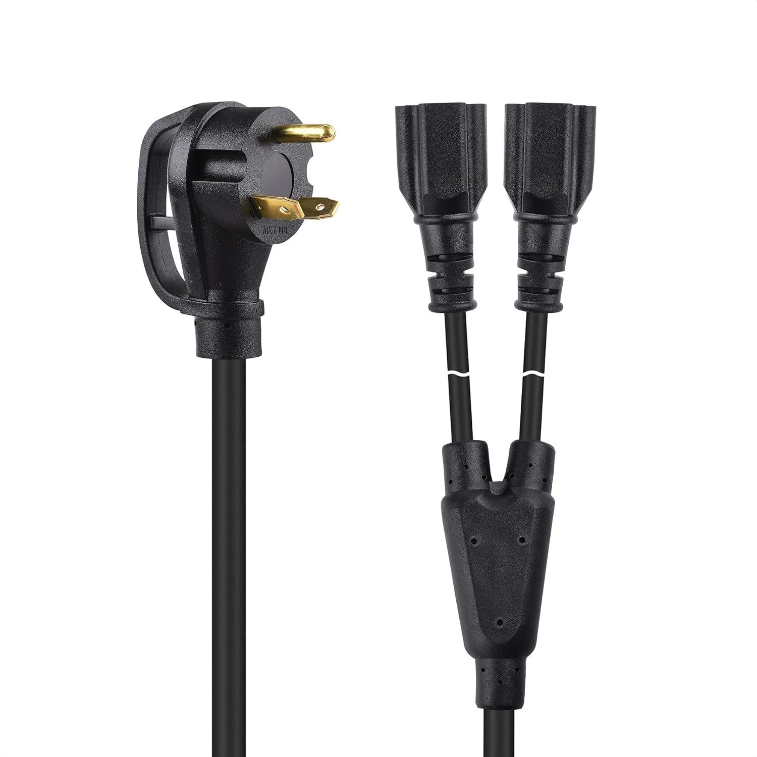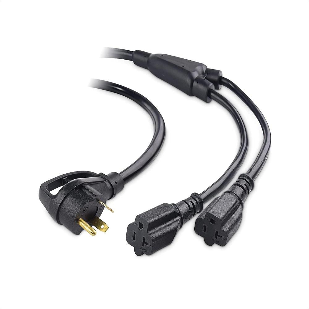 The Cable Matters 3-Prong RV Adapter splits a 30 Amp TT-30 outlet into two 3-prong 5-20R grounded receptacles; 30 Amp to 20 Amp splitter works with RV outlets, portable generators, and other heavy-duty appliances with TT-30R power connectors