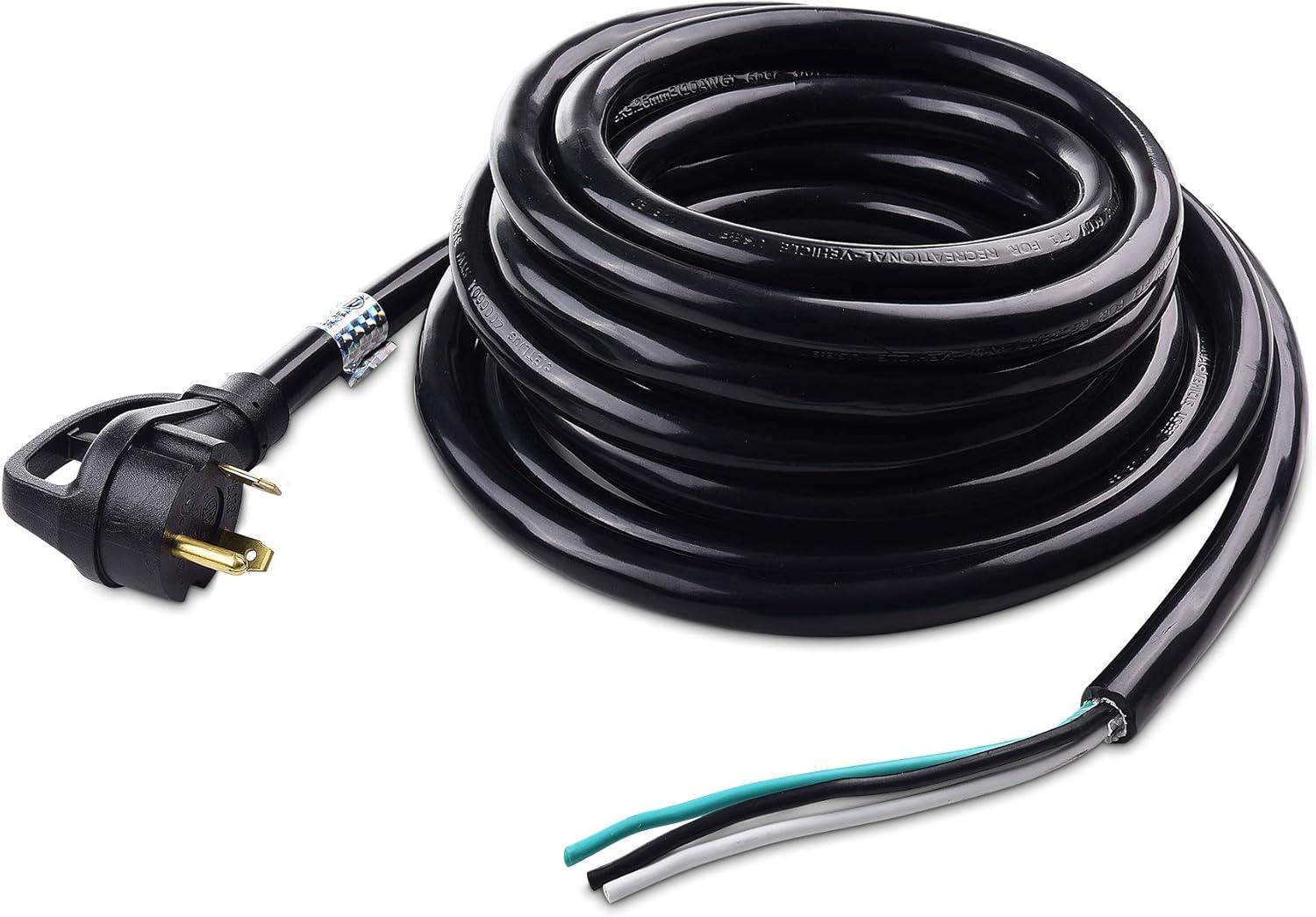 Outdoor rated RV power cable has a 10/3 STW rating with 3-wire 10 gauge copper conductors; Flexible and weather-resistant 30amp RV electrical cord is engineered with a 600V rated thermoplastic STW cable jacket to prevent overheating