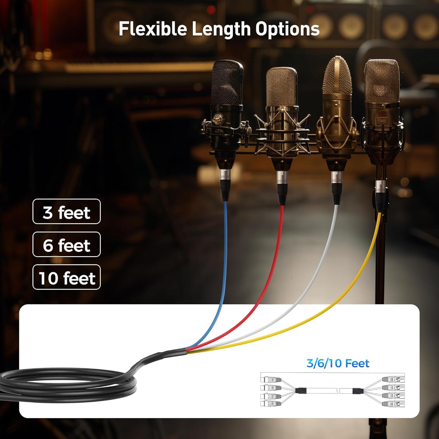 Cable Matters 4-Channel XLR Male to Female Snake Cable/XLR Snake Cable - 10ft, Professional Audio Connectivity with Shielding and Color-Coded Channels(3 Feet)