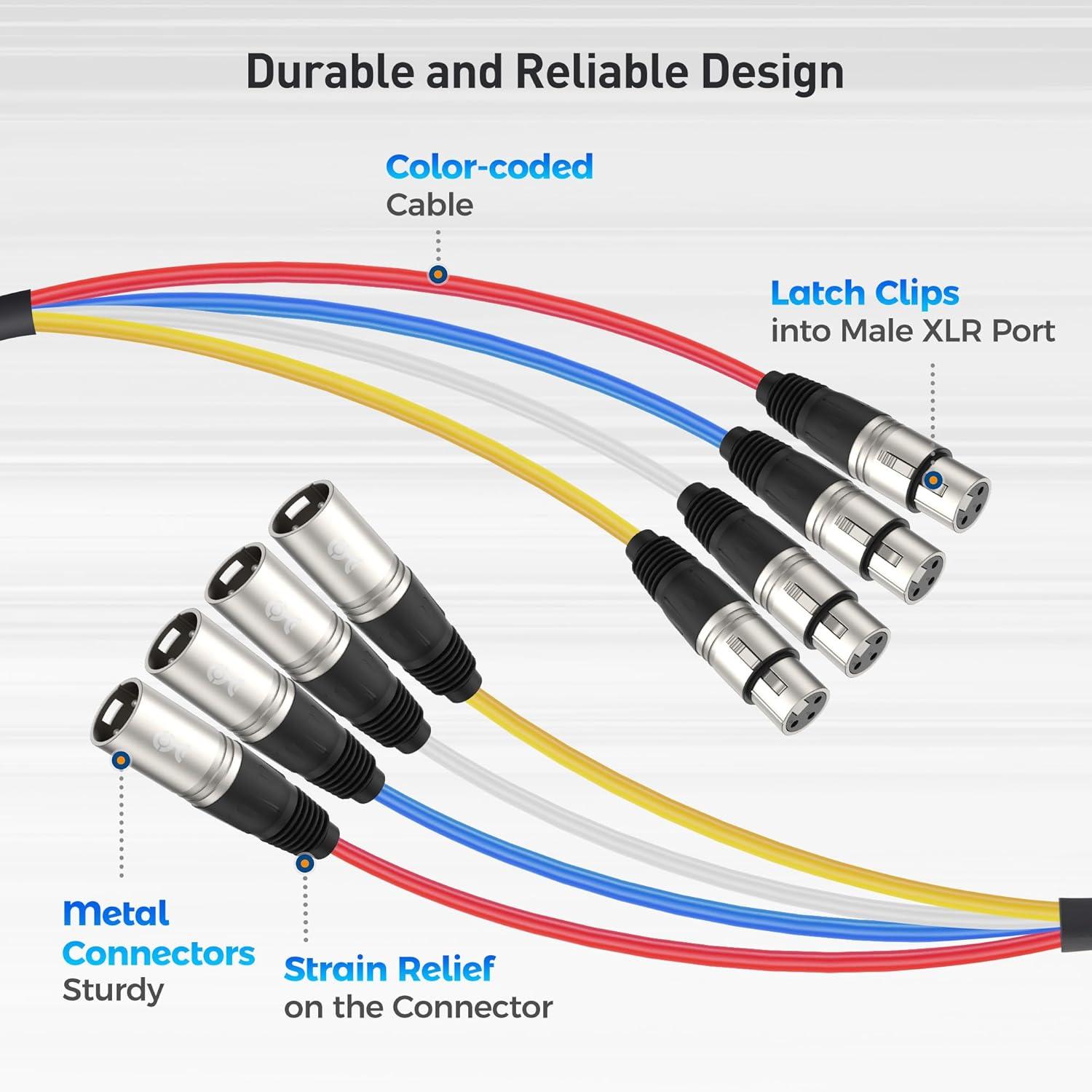 Cable Matters 4-Channel XLR Male to Female Snake Cable/XLR Snake Cable – 10ft, Professional Audio Connectivity with Shielding and Color-Coded Channels(3 Feet)