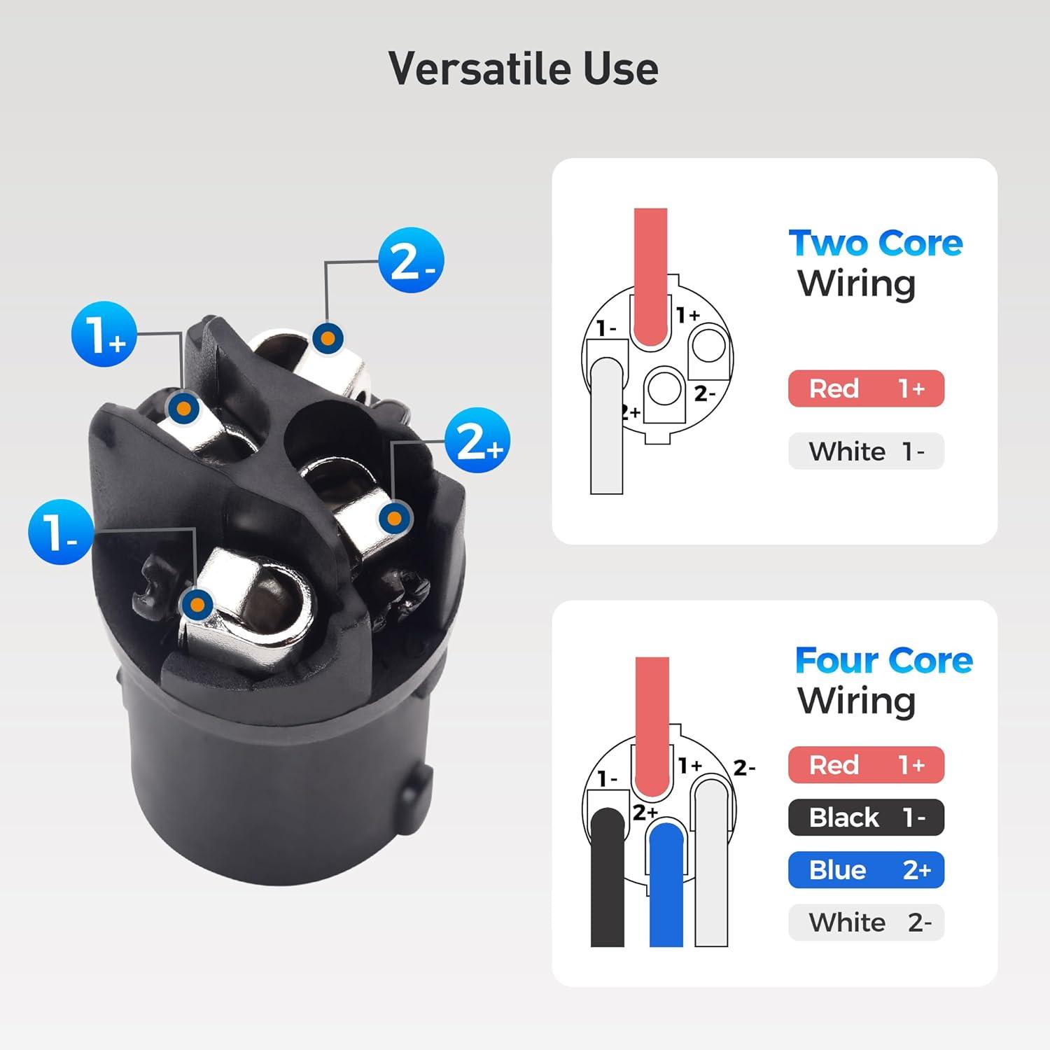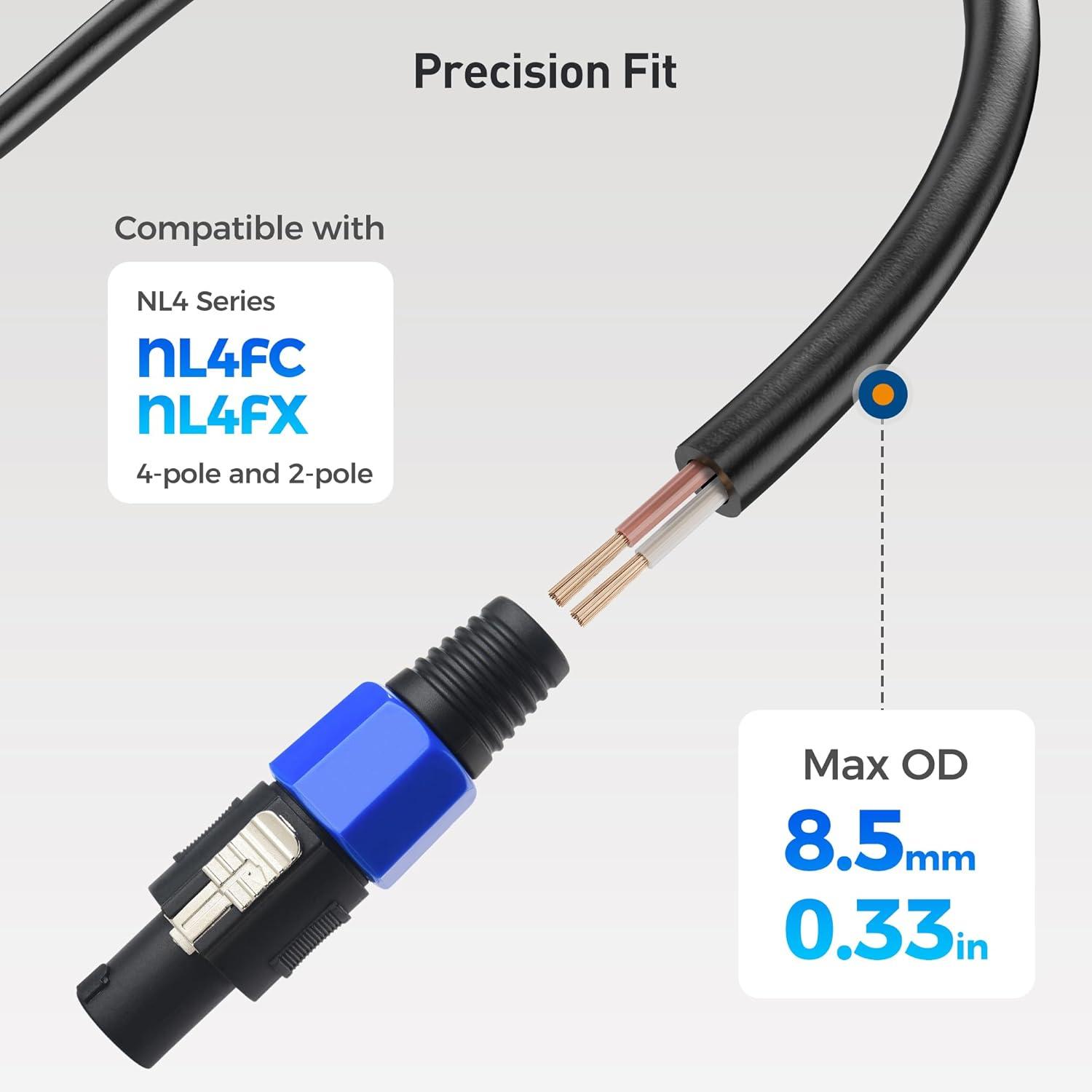 Precision Fit: These 4-pole speaker cable connectors are designed for cables up to 8.5mm (0.33 inches) in diameter, ensuring a snug and secure fit, suitable for a variety of cable sizes.