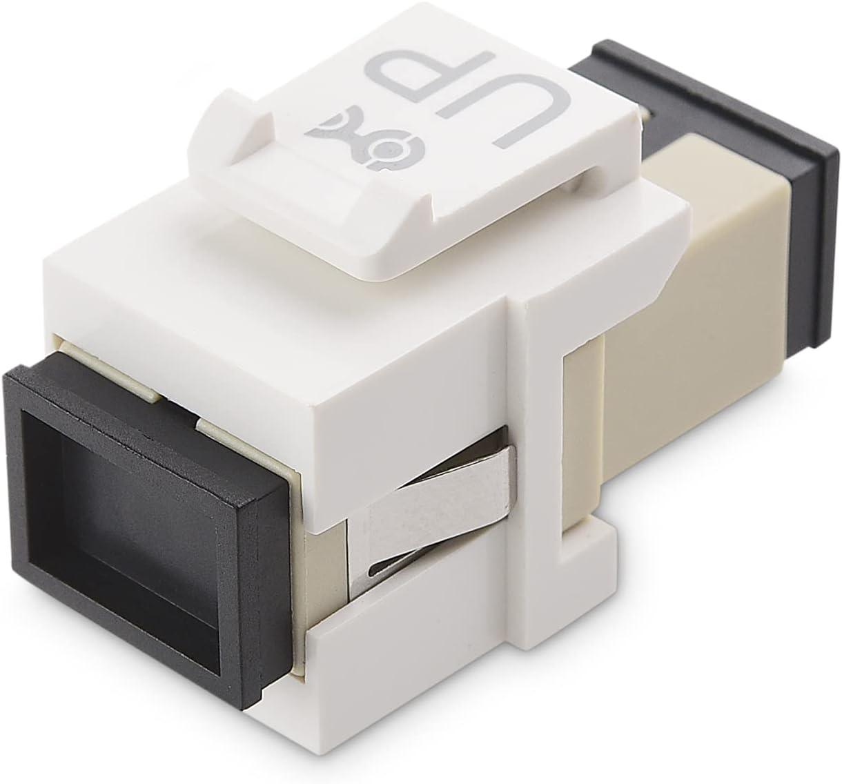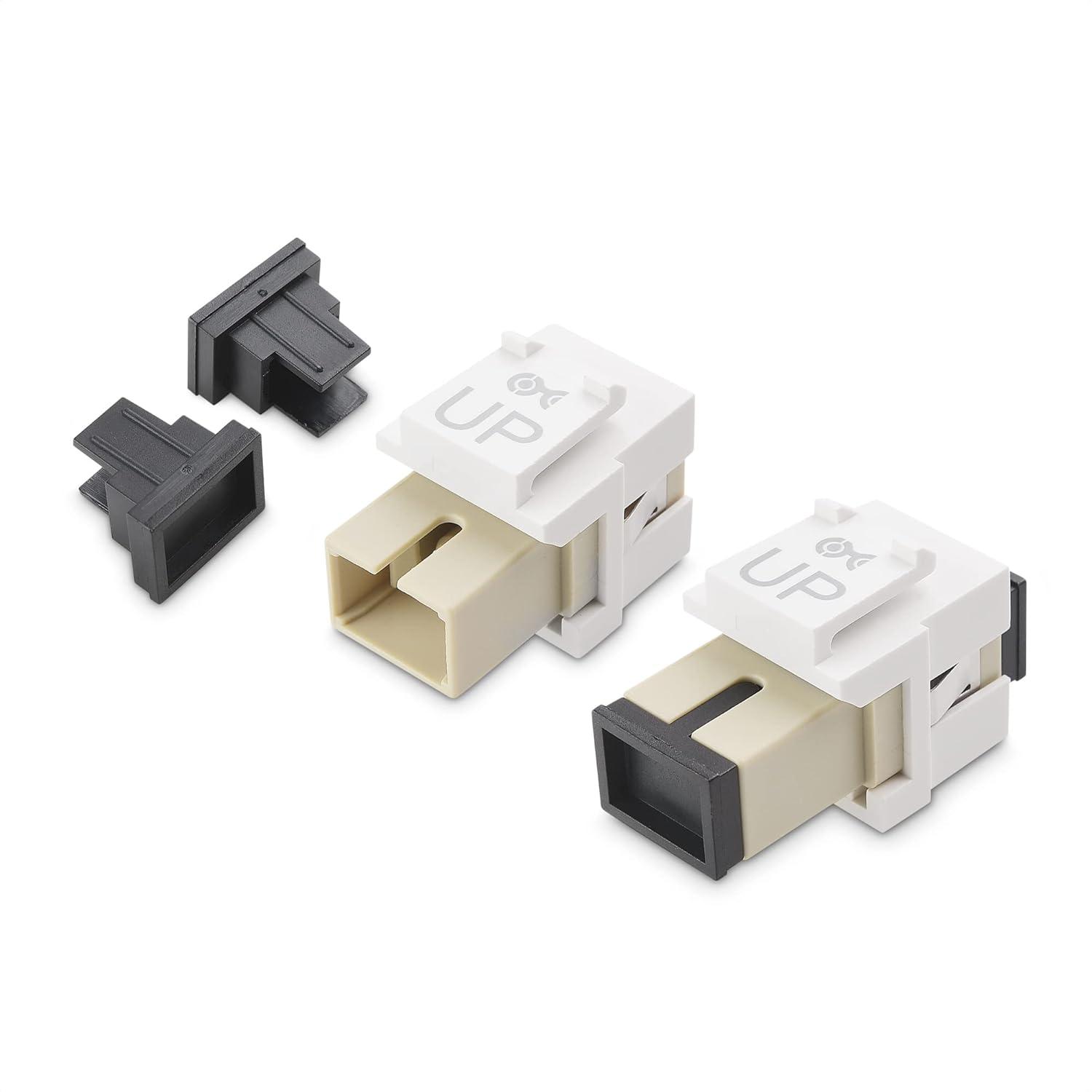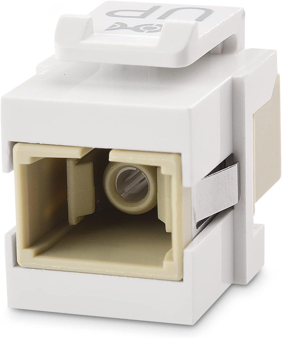 Sturdy snap-in construction of SC fiber feed-thru coupler keystone provides a secure connection; Installation of female to female keystone insert provides a professional looking installation in the home or office