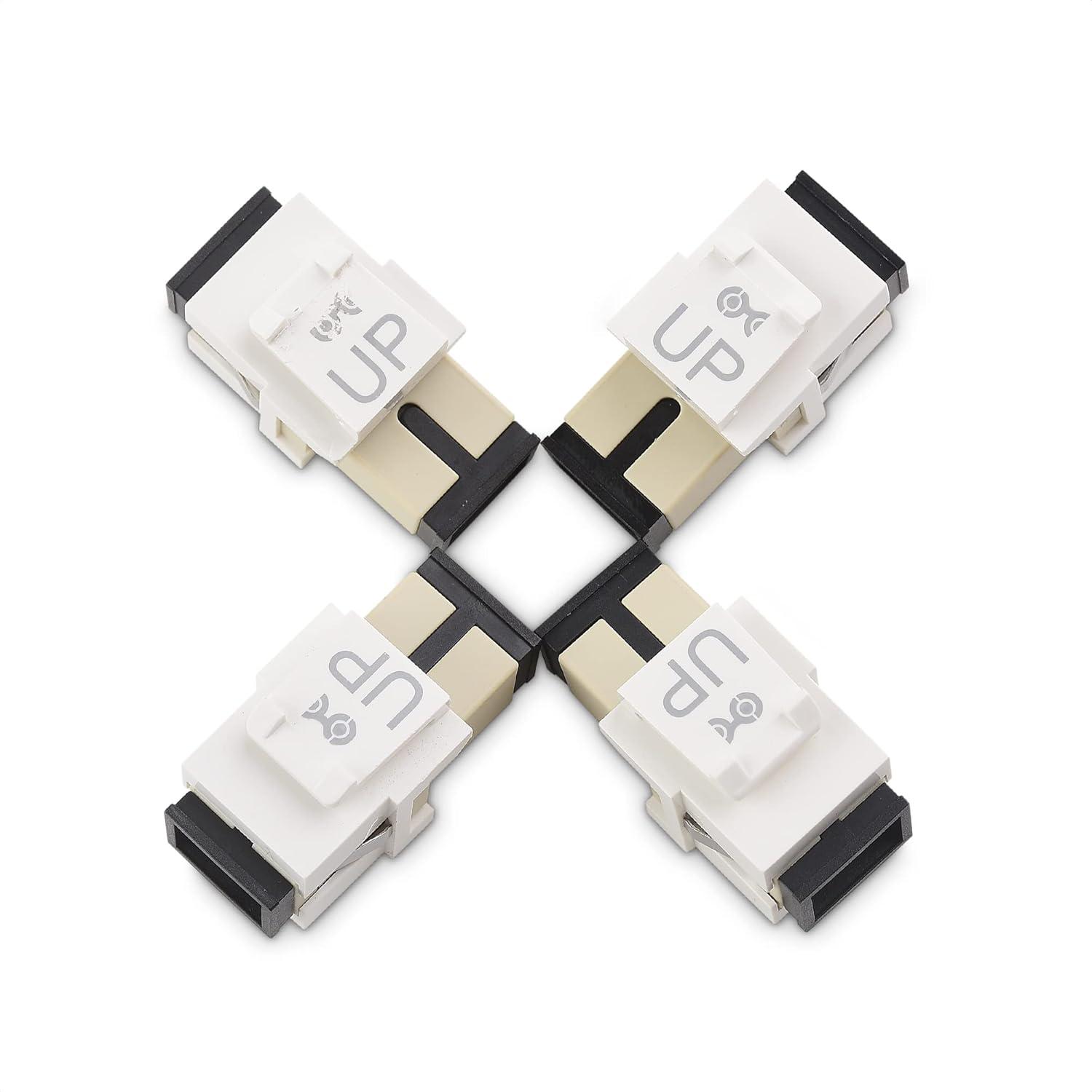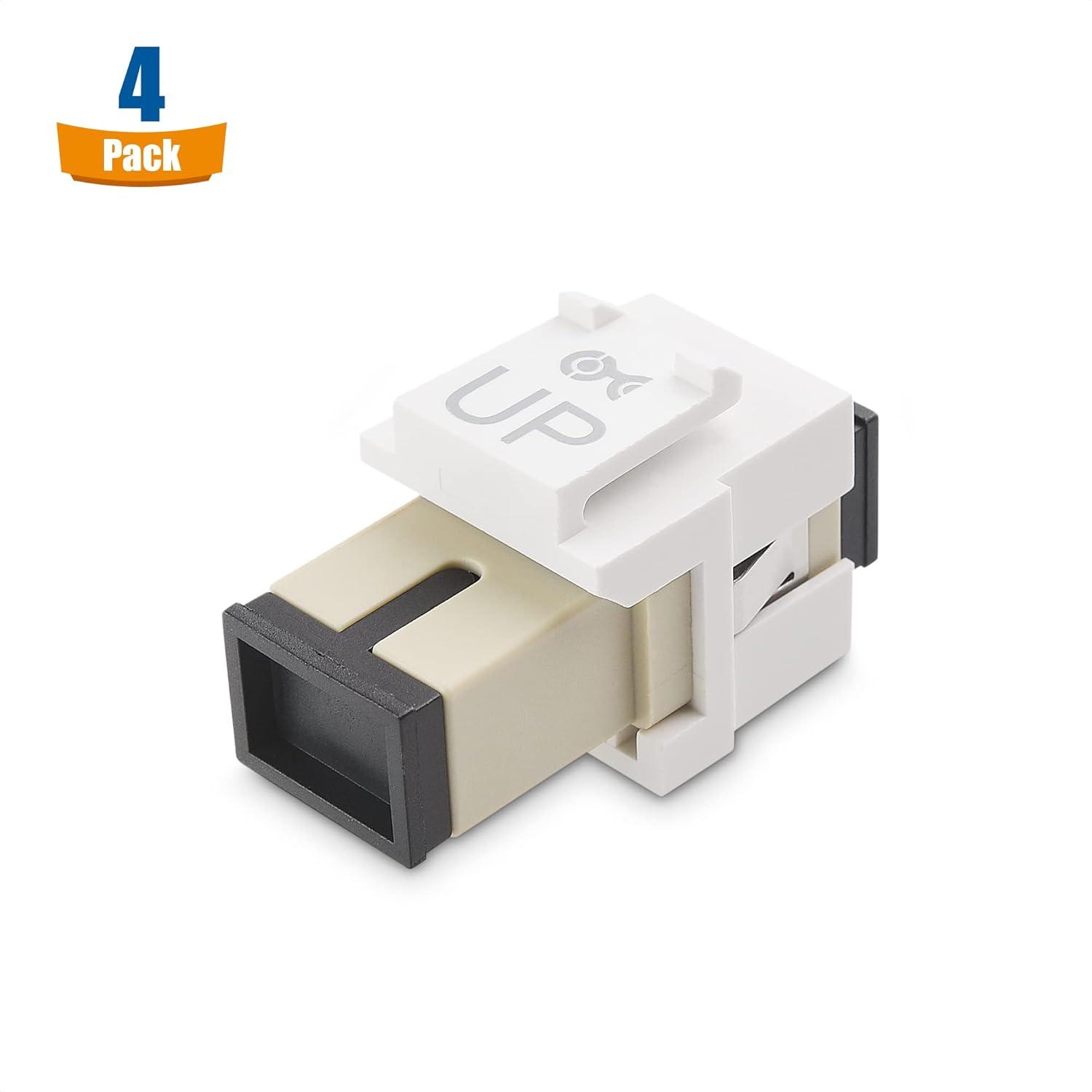 Cost-effective 4-pack provides 2 sets of keystone jack inserts to couple two SC cables to two SC cables; Re-usable keystone jack inserts with caps can be easily relocated for moves and changes of an SC fiber cable
