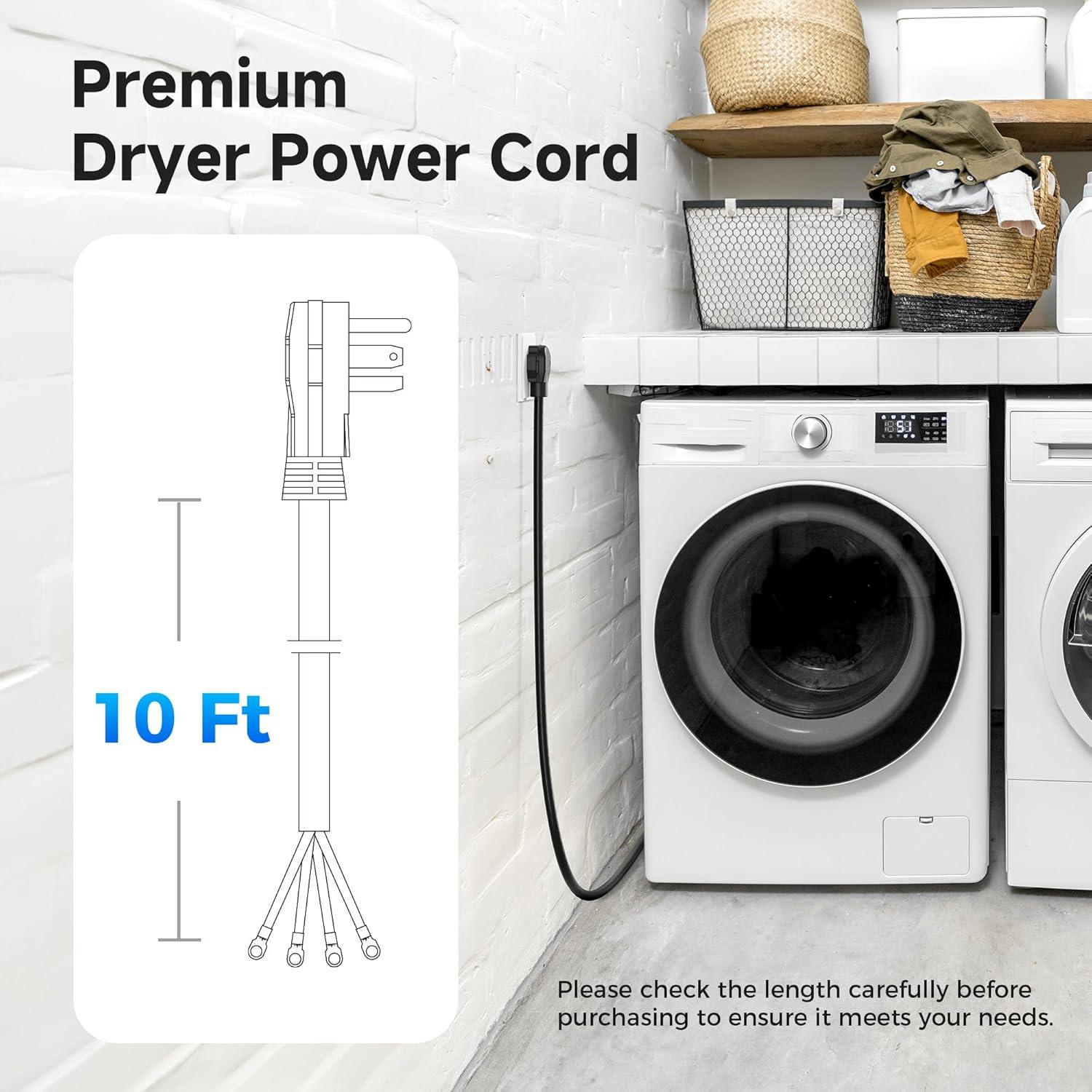 Cable Matters 4 Prong Dryer Cord - 6ft, Supports 30A/250V/7500W, 10AWG, NEMA 14-30P to 4 Wire, Dryer Power Cord(10 Feet)