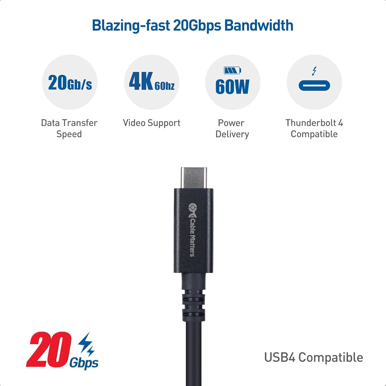 Step into the future of USB with the Cable Matters Active USB4 to USB4 Cable; Active USB Type C cable supports the latest USB4 standard for up to 40Gbps of bandwidth, 8K video support, and 100W charging