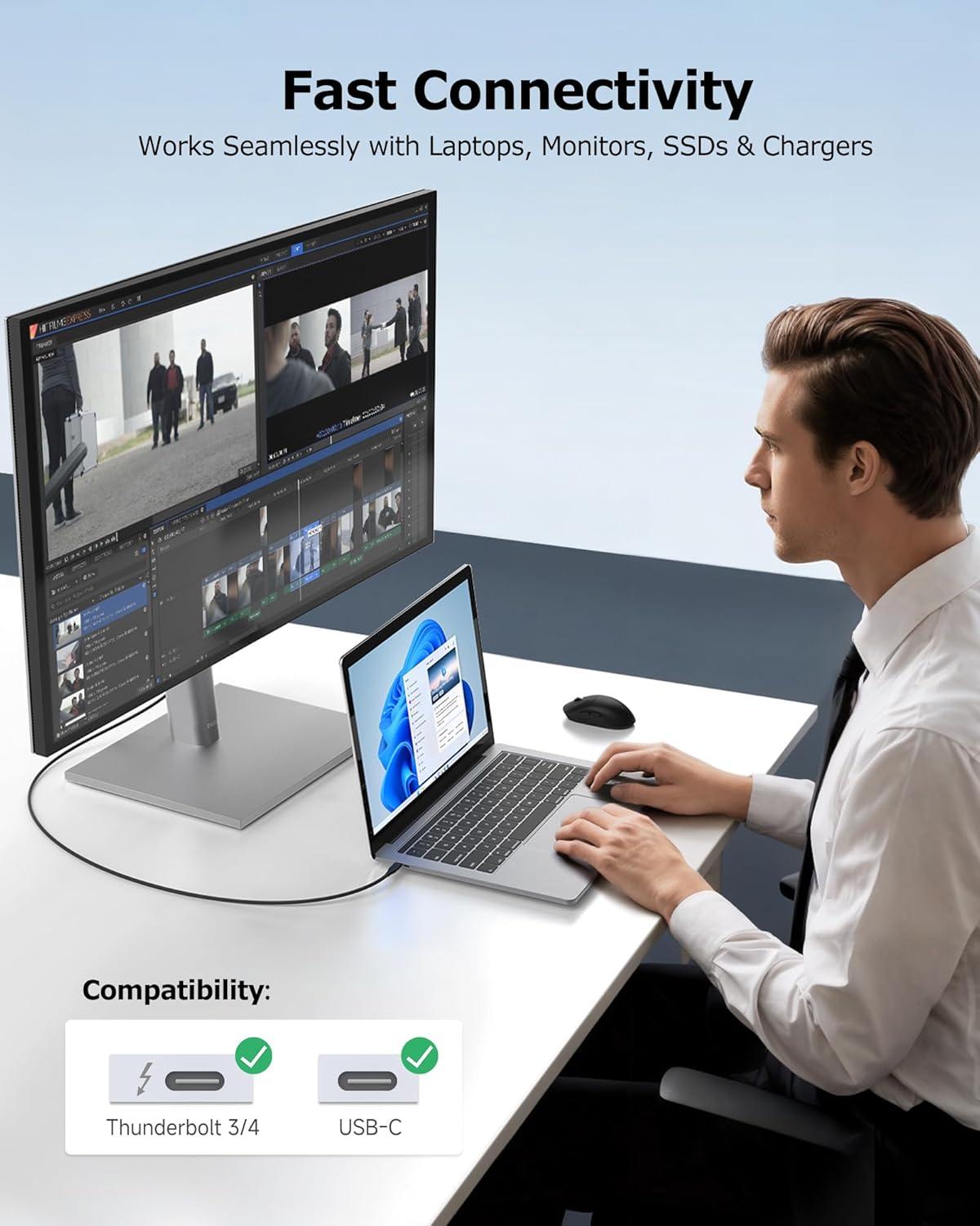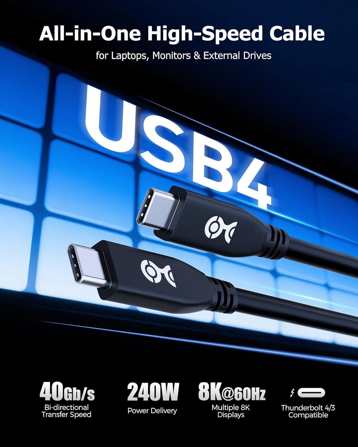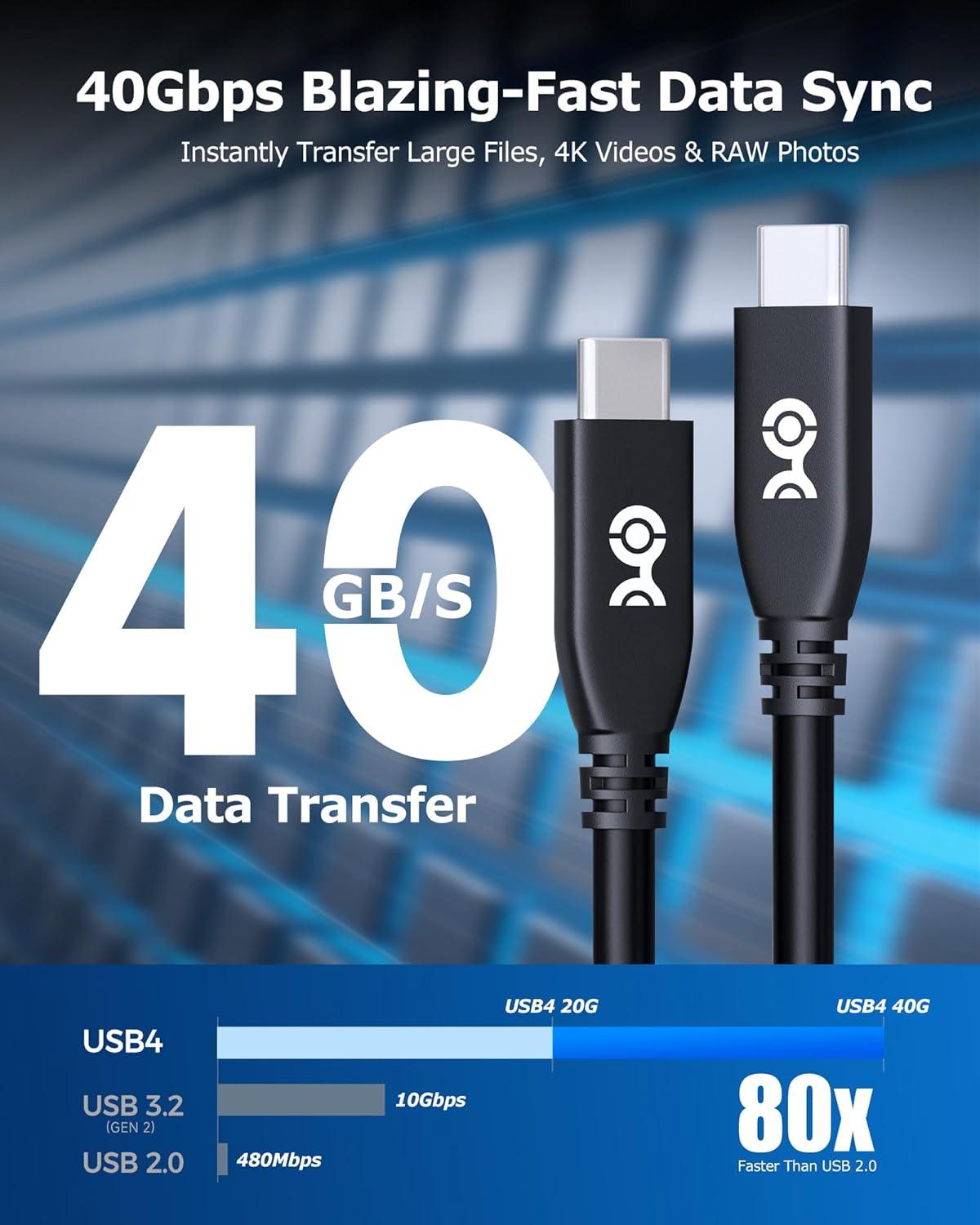 Unmatched Data Transfer Speed: This USB4 USB-C cable supports up to 40Gbps bandwidth for USB4 devices and is backward compatible with 20Gbps USB4 devices, ensuring smooth data transfer across a wide range of devices and applications.