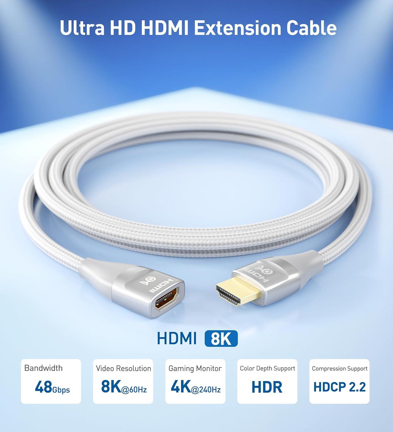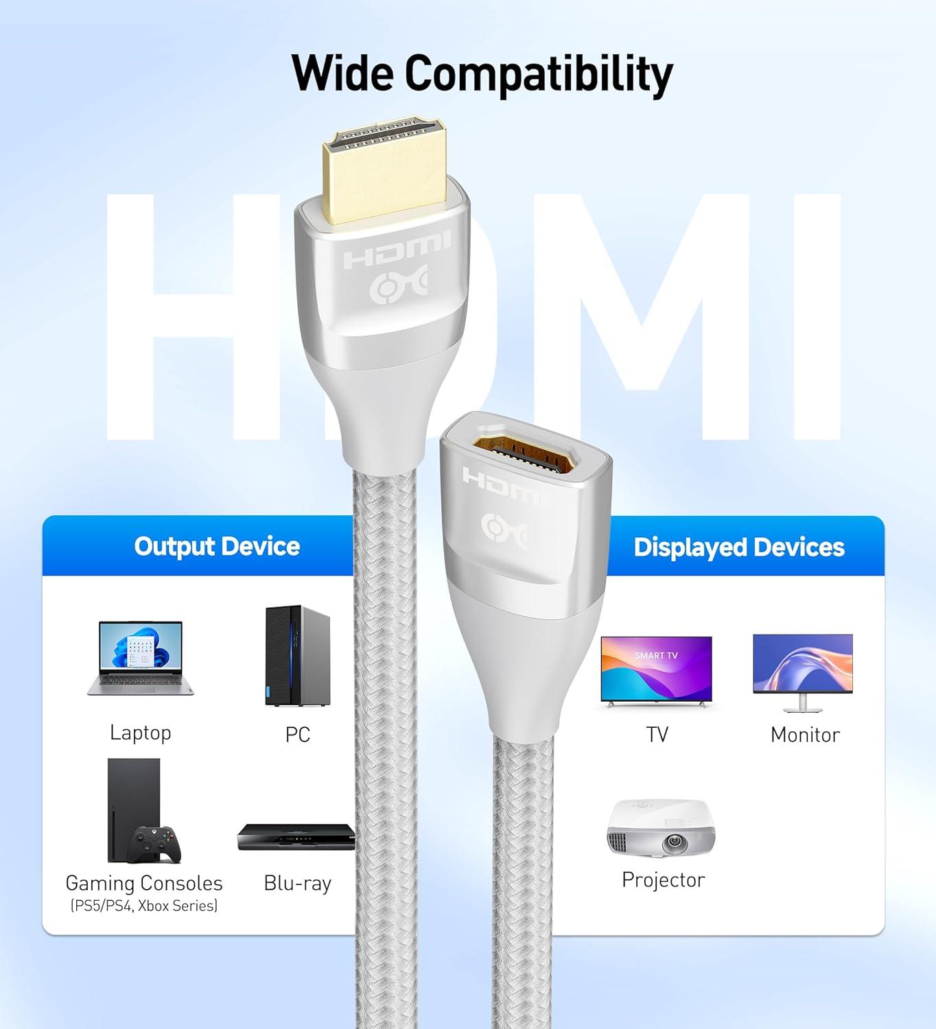 Future-proof audio and video connections at home, in the office, or the conference room with this feature-filled HDMI female to male adapter cable; High speed HDMI to HDMI extension cable supports up to 8K (7680×4320) as specified in HDMI 2.1 standard