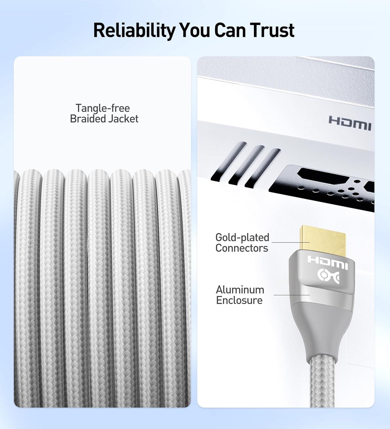 Set up your game console away from your wall-mounted TV and extend its cable connection, while preserving the advanced features of the latest game consoles with this 8K HDMI cable extension